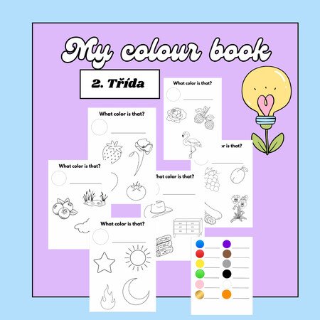 Postup při použití: Rozdejte žákům všechny pracovní listy nebo můžete práci rozdávat po částech. Když budou mít žáci vyplněné všechny pracovní listy, mohou si z nich vytvořit “Colour book”.