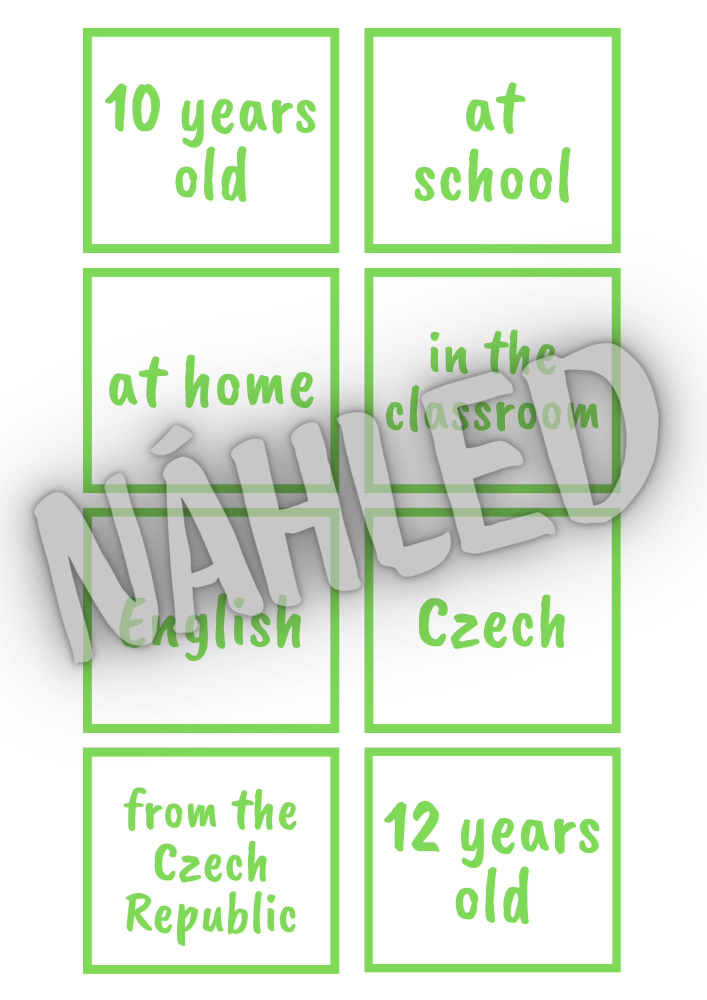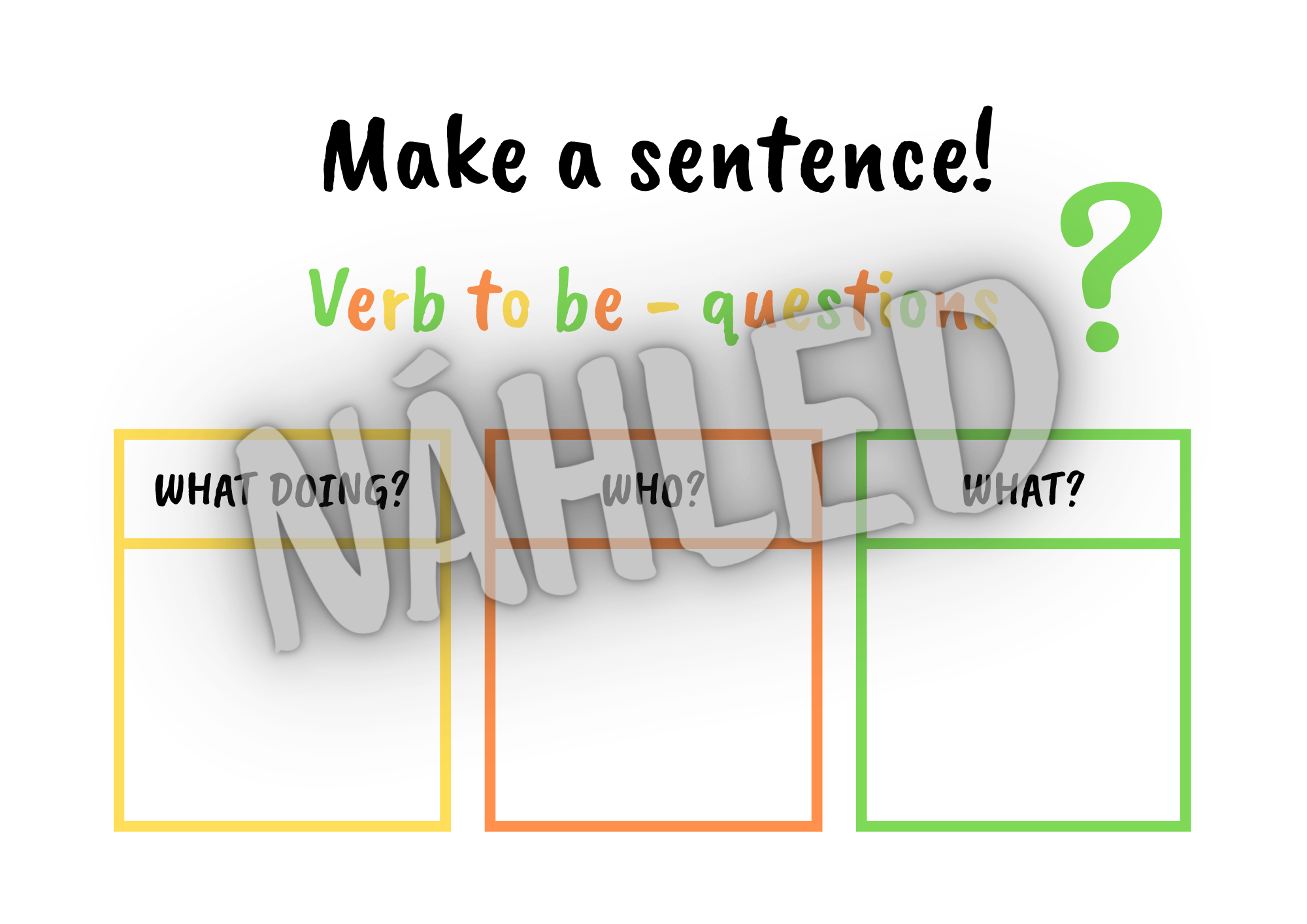 - 2 listy, na které žáci umisťují kartičky - jeden pro kladné a záporné věty, druhý pro otázky