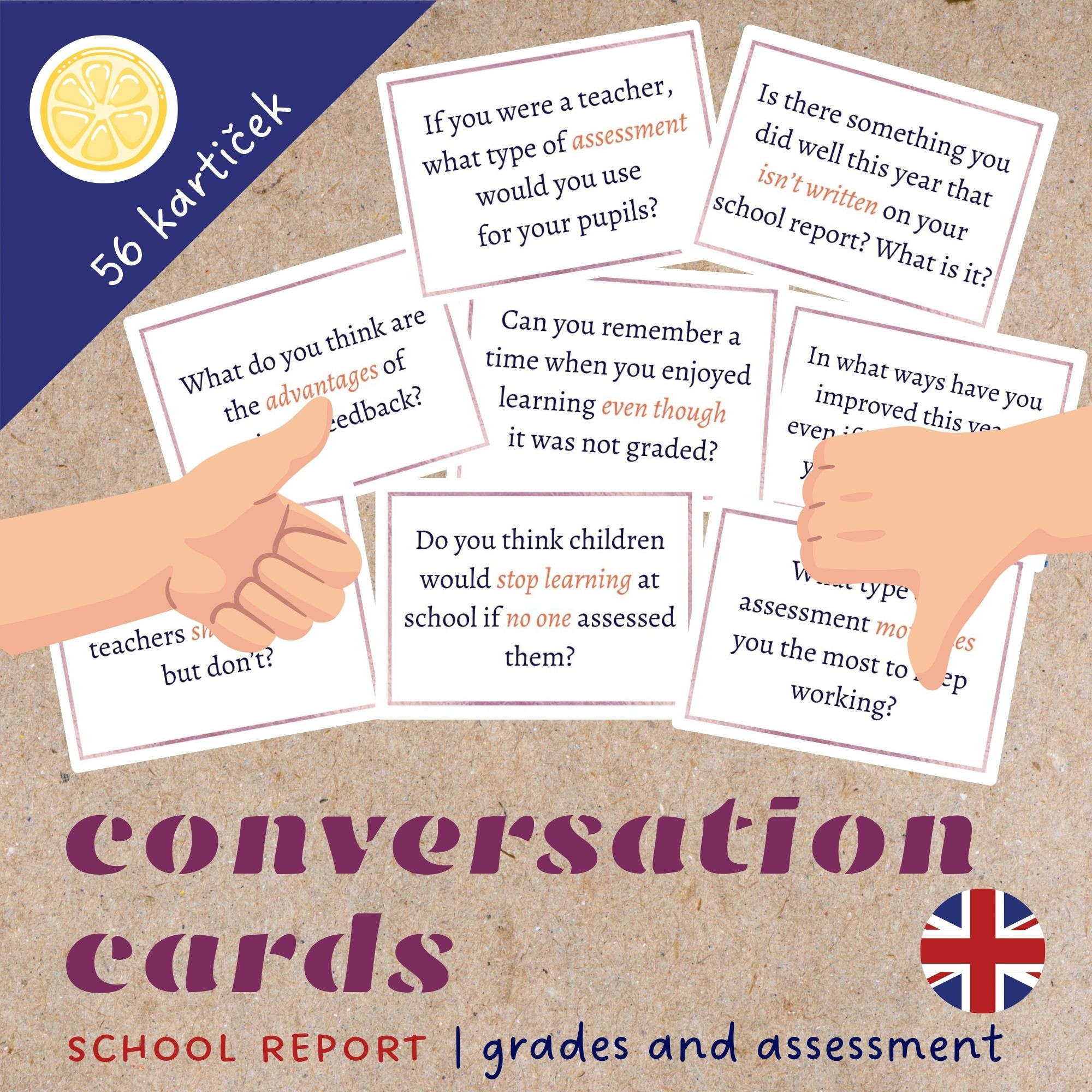 ✏️Soubor obsahuje 56 anglických konverzačních kartiček s dotazy, které vedou k reflexi i sebereflexi, umožňují vyjádřit vlastní názor, radost i nespokojenost a diskutovat nad otázkami, které rezonují v aktuální společenské debatě o budoucích podobách českého školství.