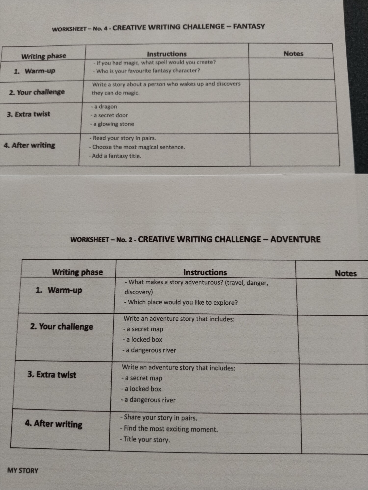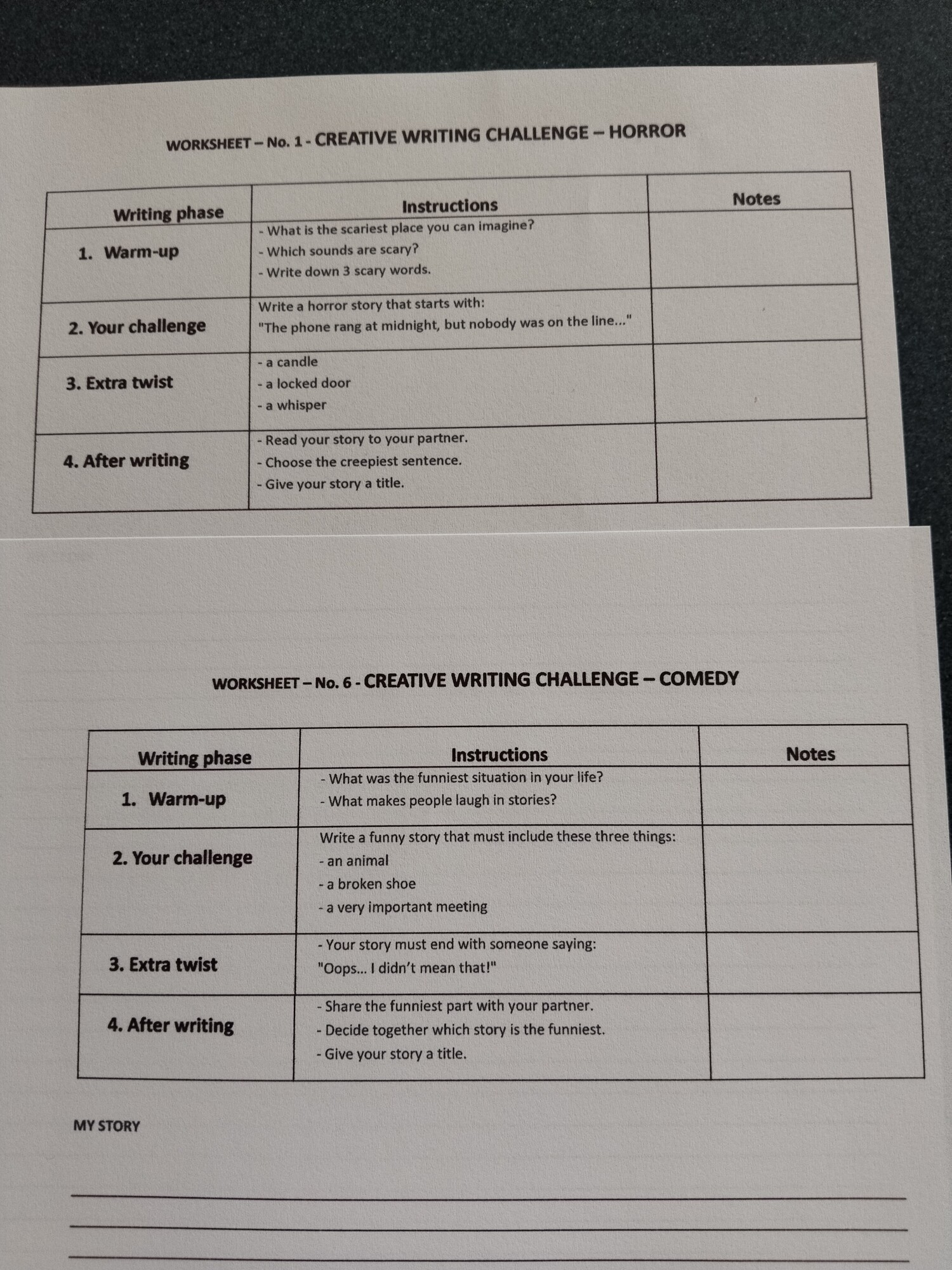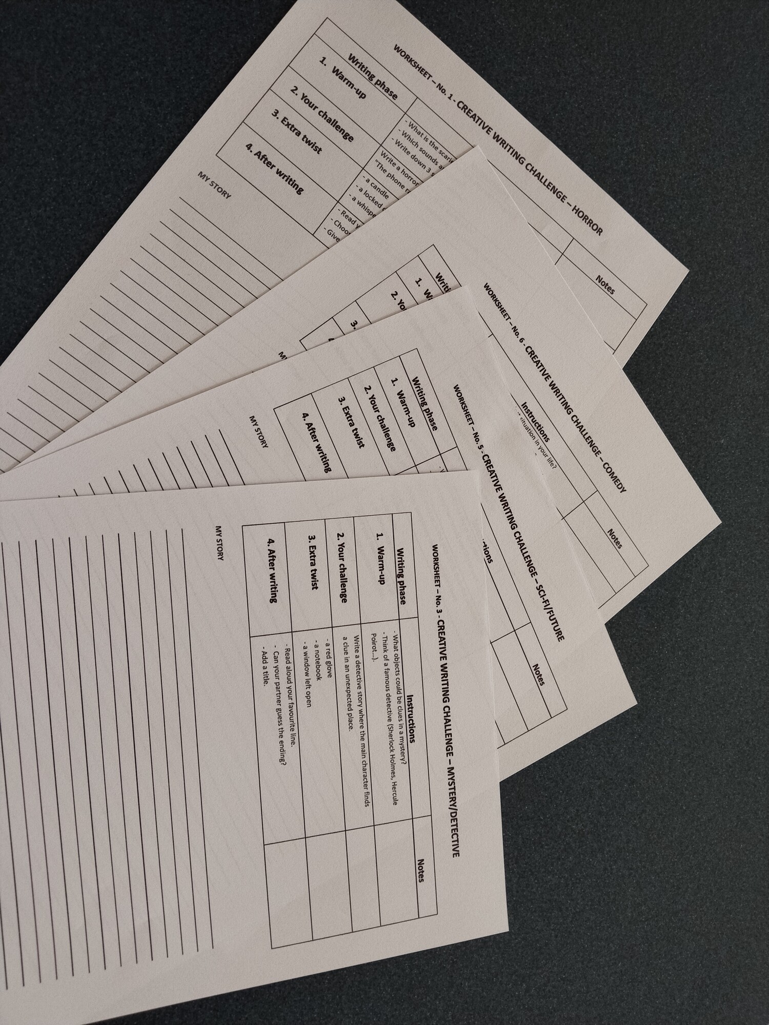 Pracovní listy jsou READY TO USE – tzn. po vytištění jsou ihned připravené a vhodné k použití. Na každém pracovním listu je zároveň zadání a zároveň na něj student může i svůj příběh napsat.