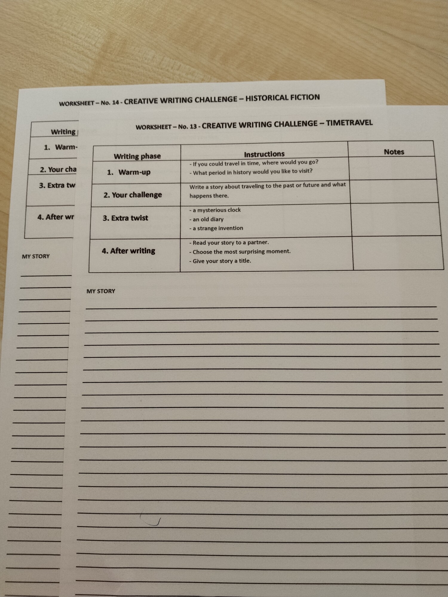 Pracovní listy jsou READY TO USE – tzn. po vytištění jsou ihned připravené a vhodné k použití. Na každém pracovním listu je zároveň zadání a zároveň na něj student může i svůj příběh napsat.