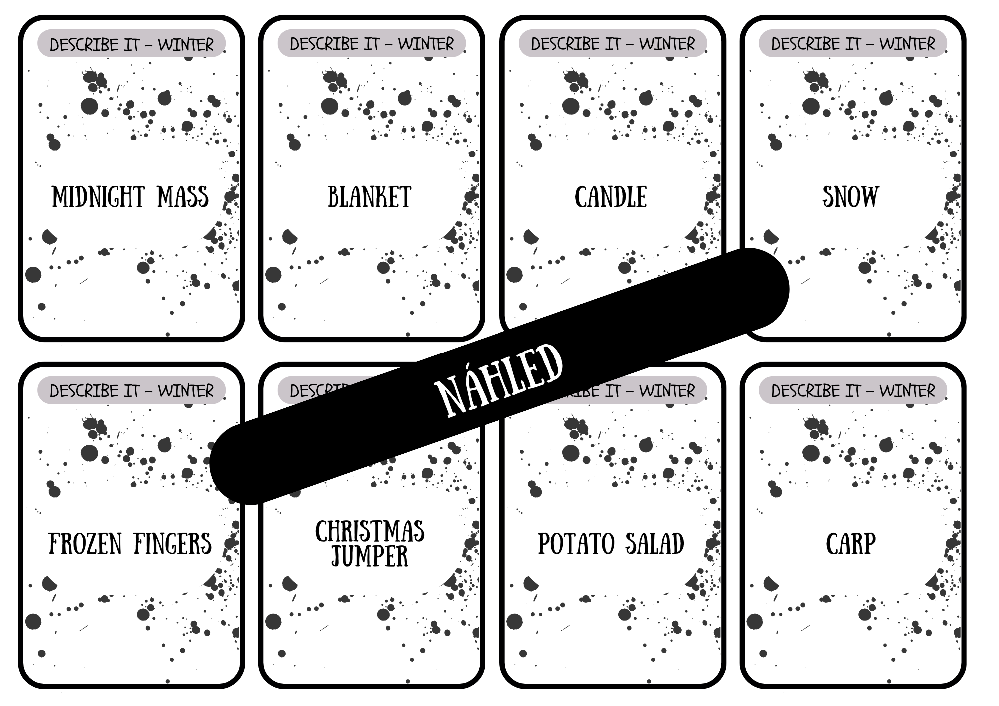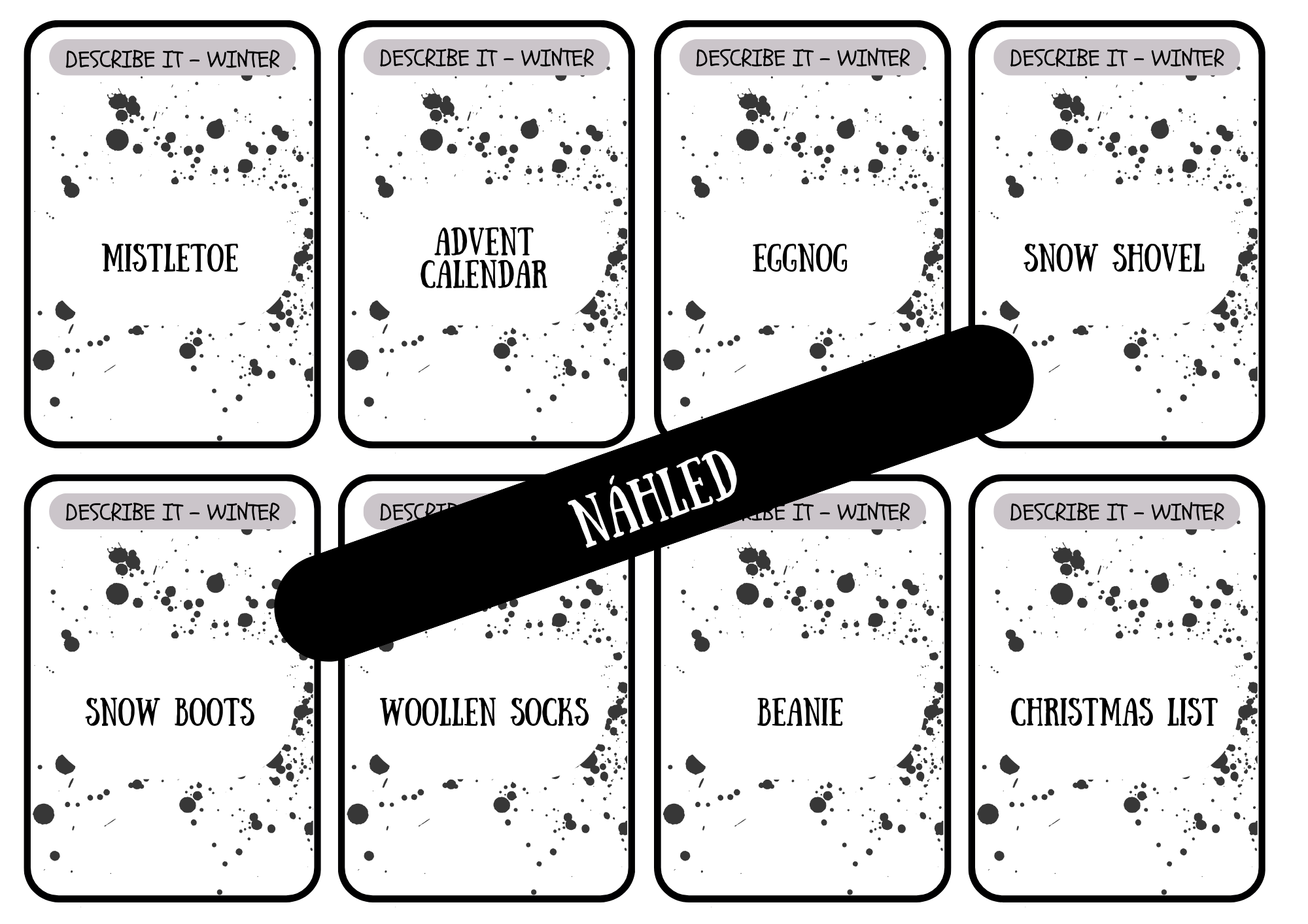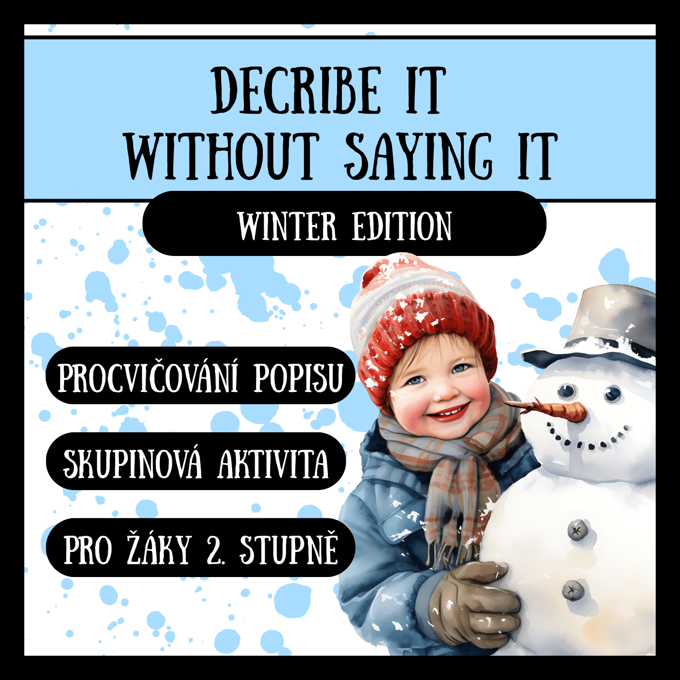 Jedná se o hru Describe it without saying it, tedy o popis slov bez toho, aniž by žáci použili kořen slova. Žáci si při této aktivitě procvičí mluvený projev a rozšíří slovní zásobu. Tato verze je zaměřena na zimní slovní zásobu.