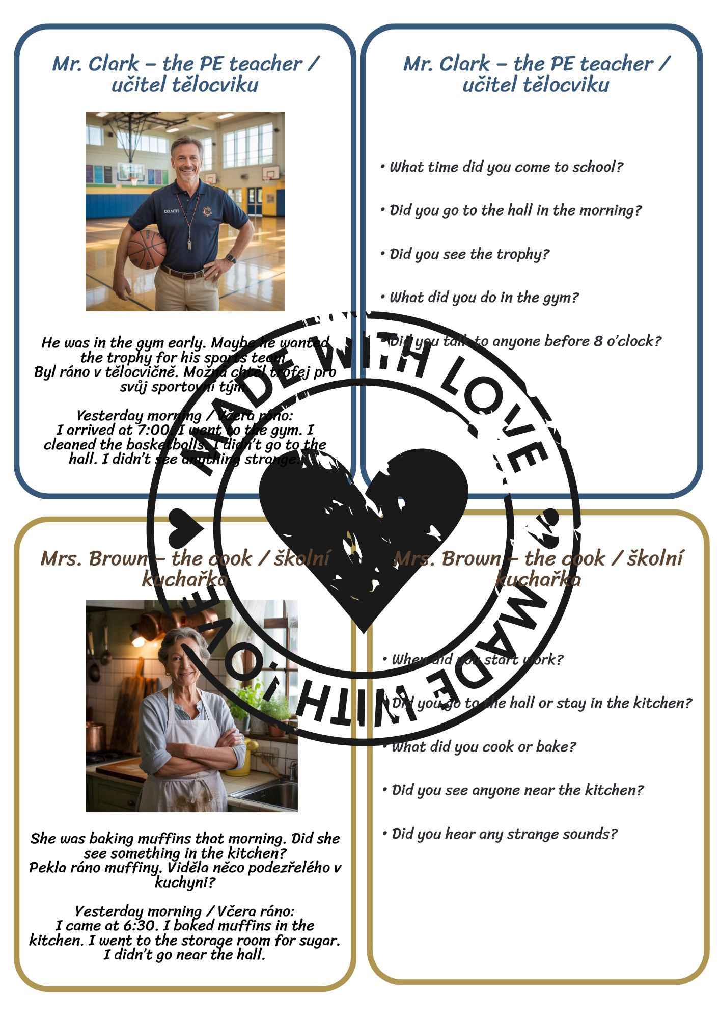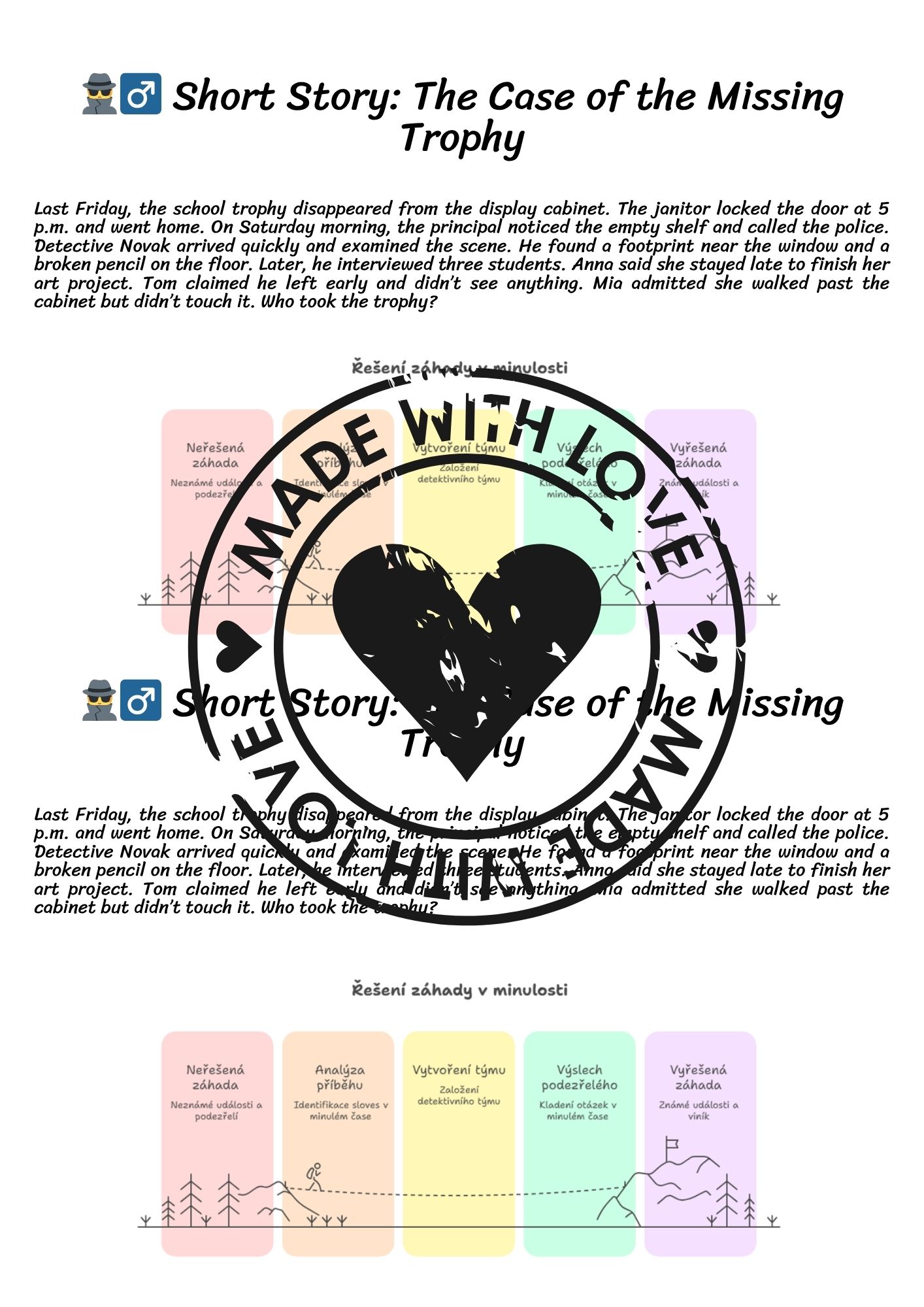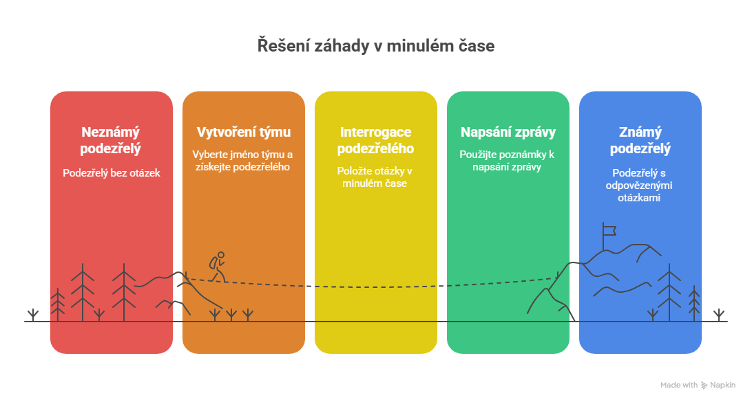 Na konci je záhada vyřešena – podezřelý je odhalen! 🎉 ➡️ Děti mají radost z úspěchu a zároveň si uvědomí, kolik se toho naučily.