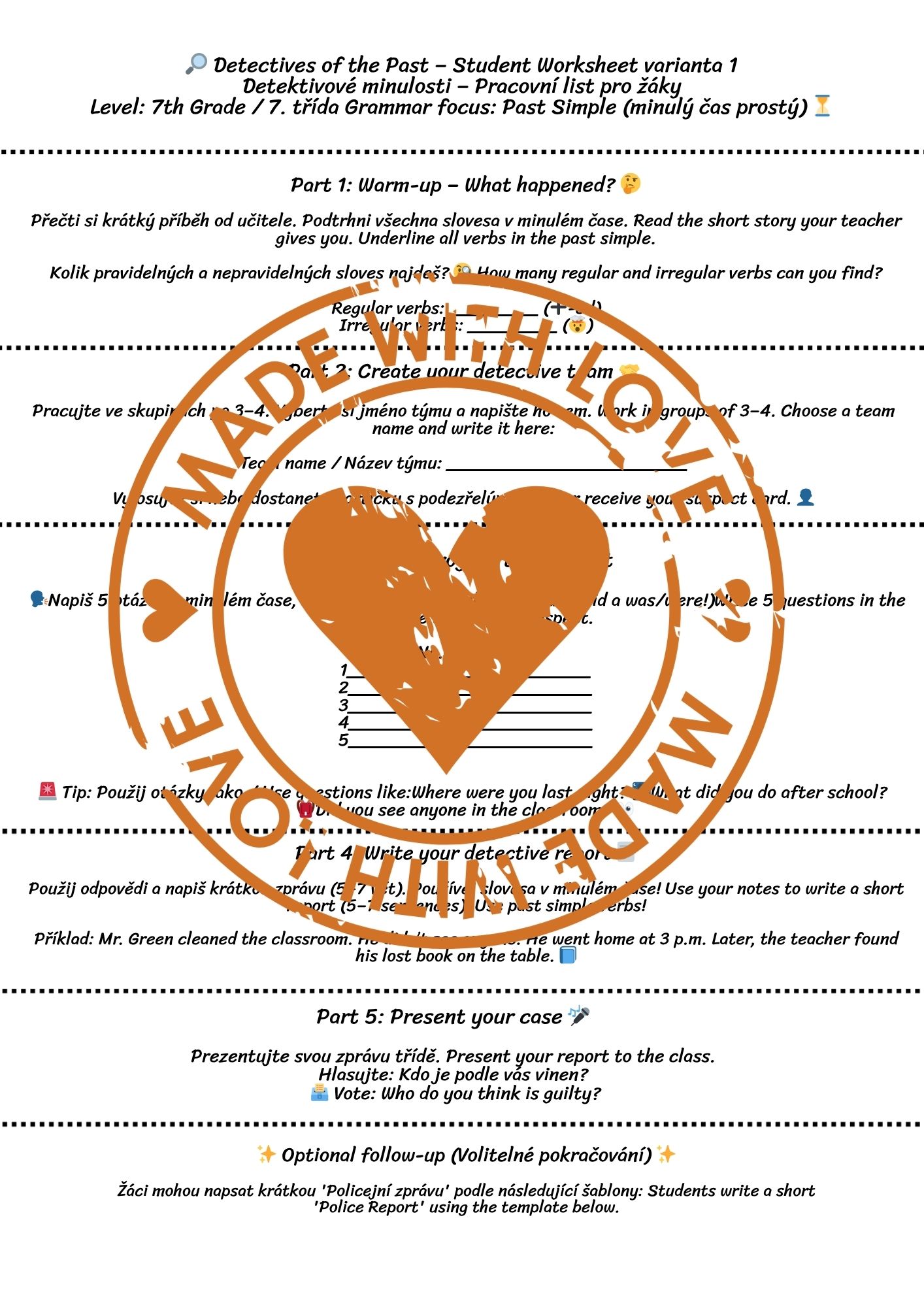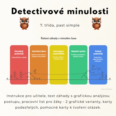 Na začátku děti dostanou záhadný případ – podezřelého, o kterém nic nevíme. Napětí stoupá! 🕵️♀️ ➡️ Skvělá motivace k práci s textem a hledání informací.