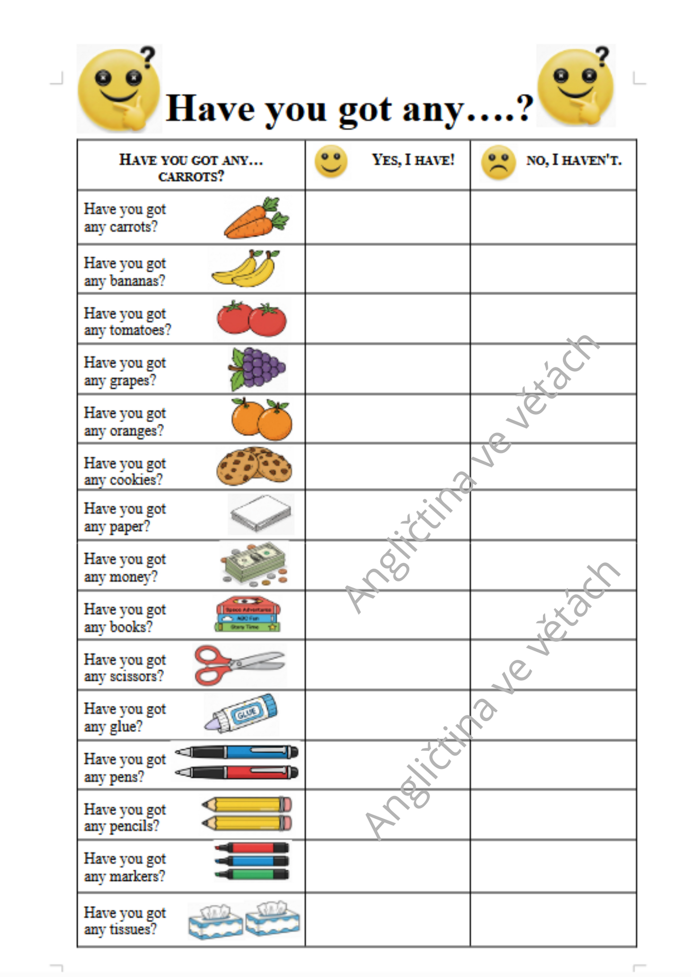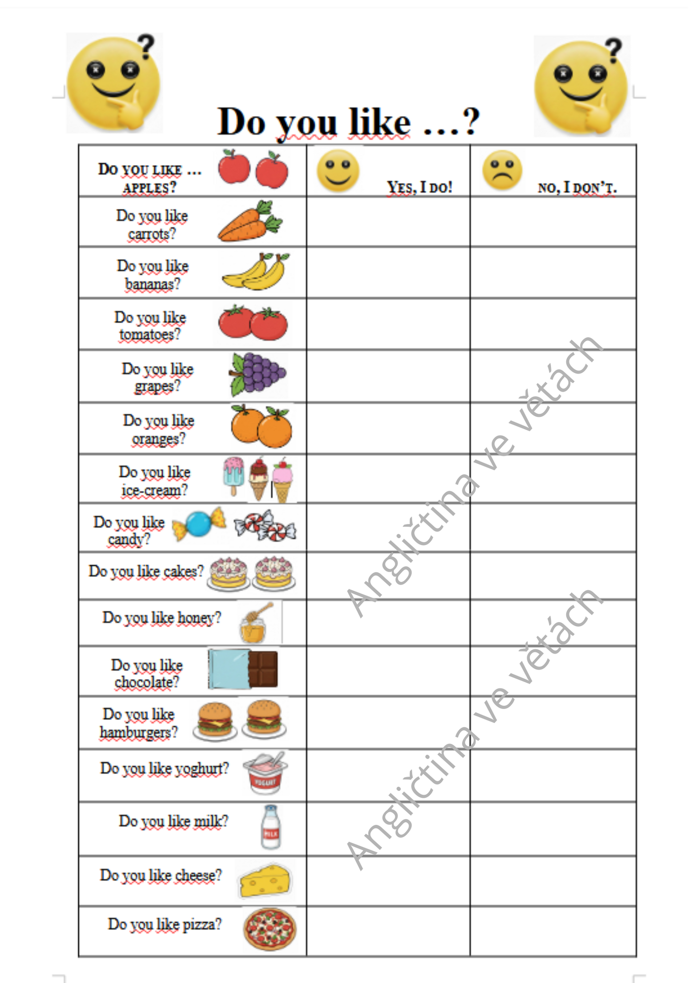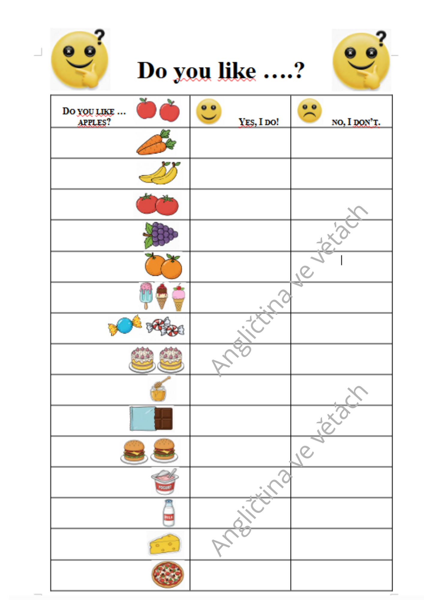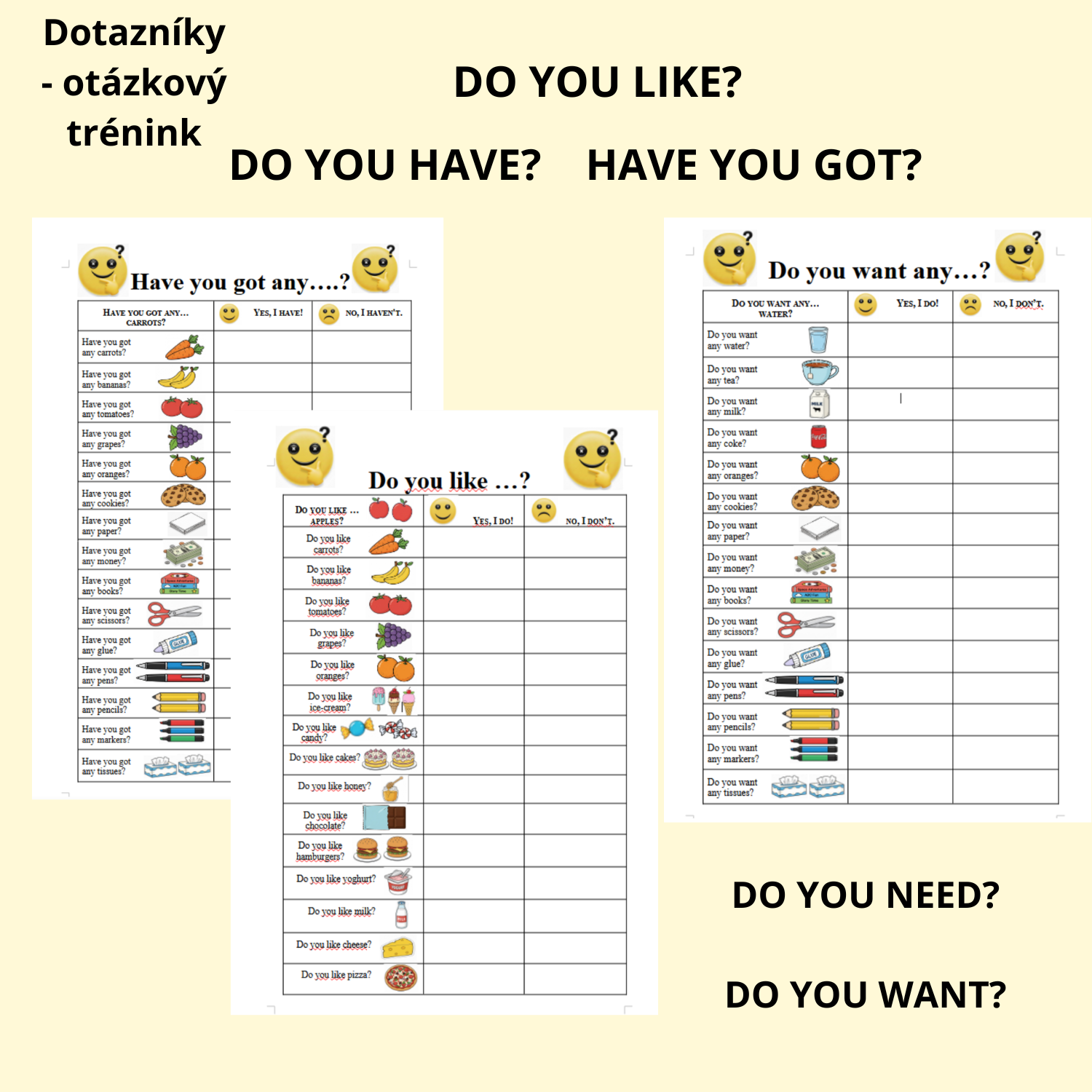 Dotazníky - otázkový trénink - aktivita pro zvládnutí otázek DO YOU LIKE? DO YOU HAVE? HAVE YOU GOT? a pár dalších 😊