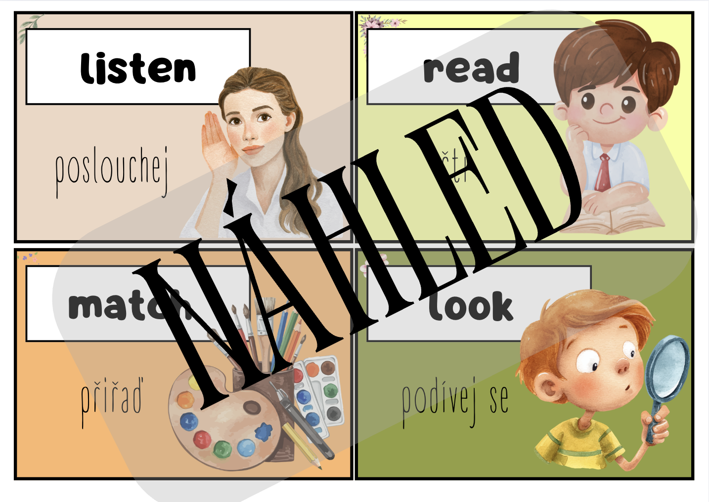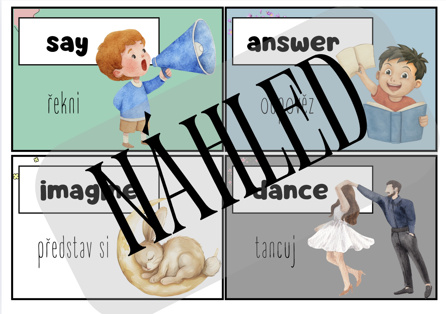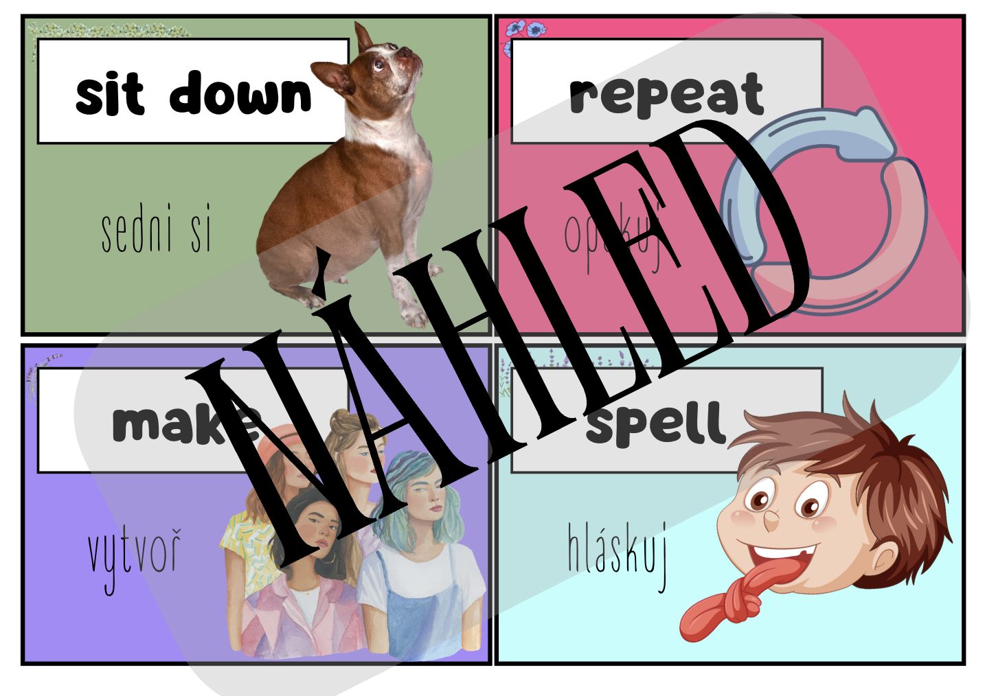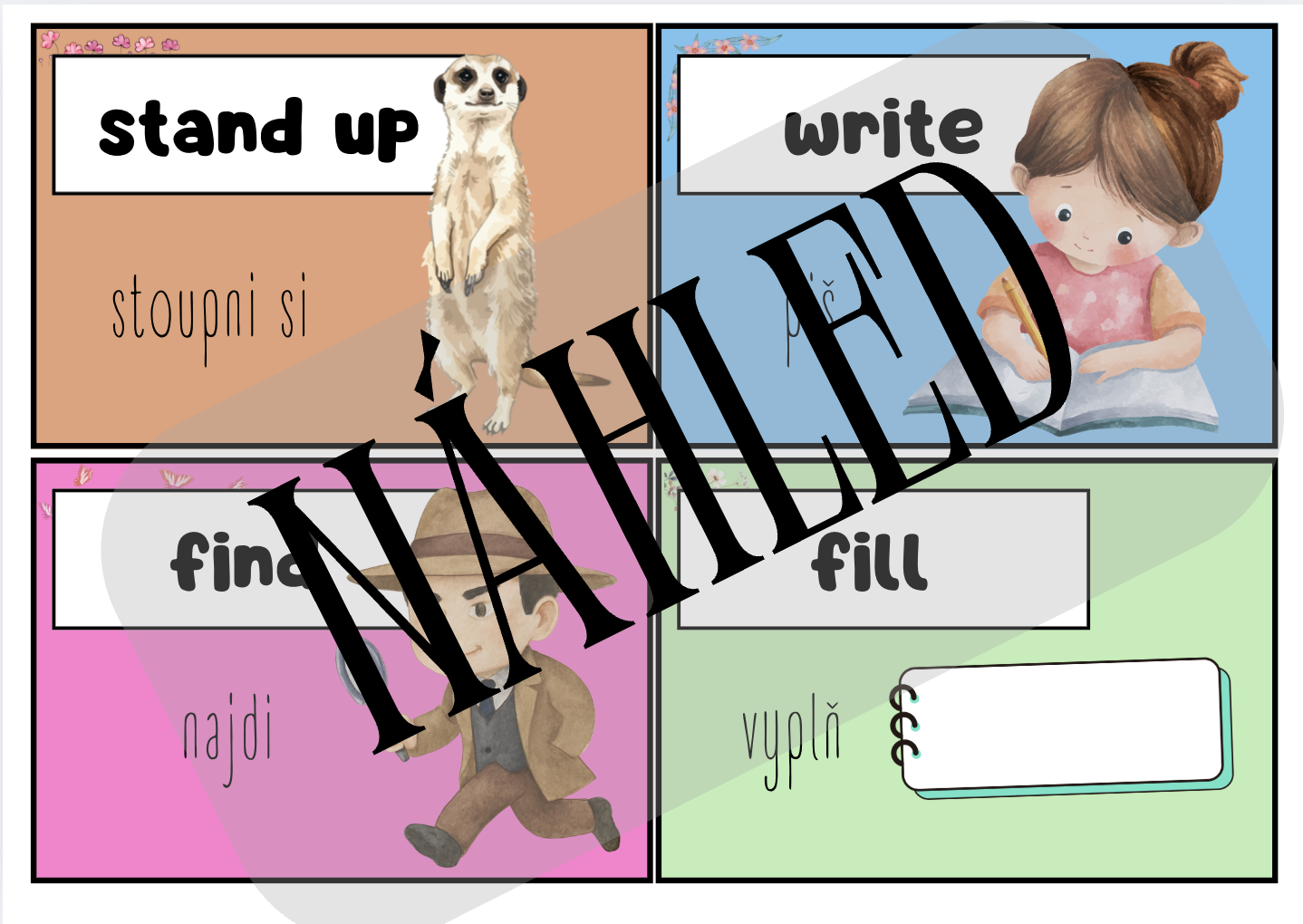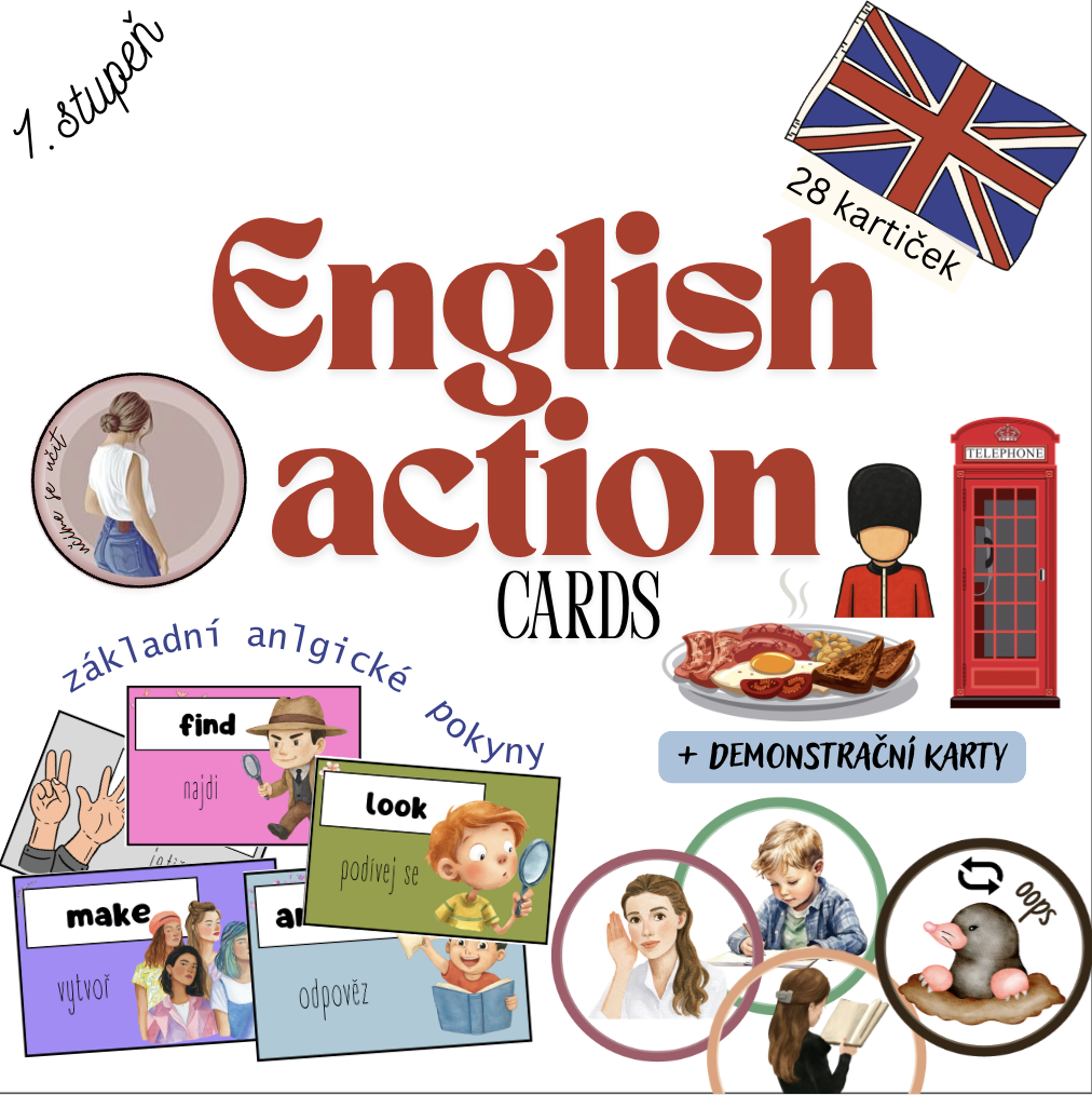 Kartičky je možné rozvěsit po učebně nebo je využívat ve hrách, jako vizuální pomůcku k okamžité akci, či náladě. Materiál je určen pro žáky 1. stupně ZŠ a podporuje učení angličtiny hravou a aktivní formou, nejen pasivním memorováním. Ideální pro učitele, kteří chtějí angličtinu v hodinách oživit a ukázat dětem, že cizí jazyk může být zábava.
