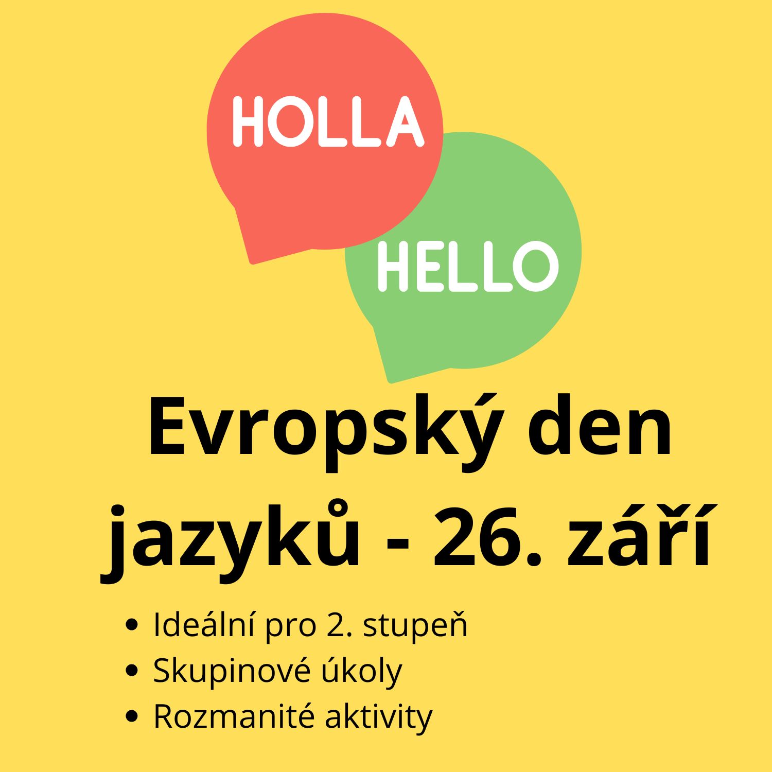 - Všestranné využití: balíček není určen jen pro Evropský den jazyků – můžete jej využít také na Projektovém dni, při hodinách o EU, Evropě a mezikulturních vztazích nebo při jiných příležitostech, kdy chcete žákům přiblížit evropské jazyky a kultury.