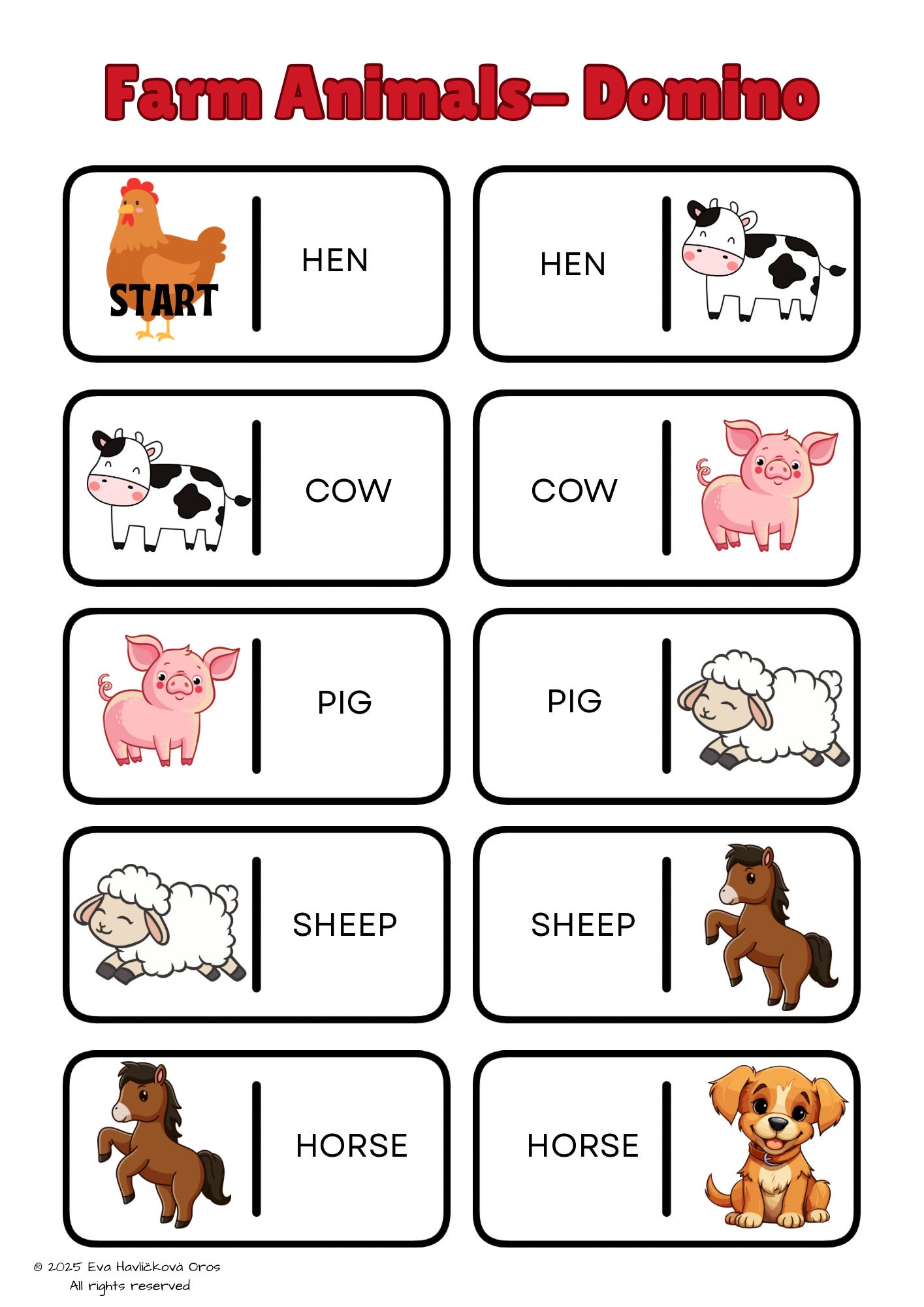Farm Animals Flashcards, Farm Animals Bingo a Farm Animals Pexeso (Memory Game).