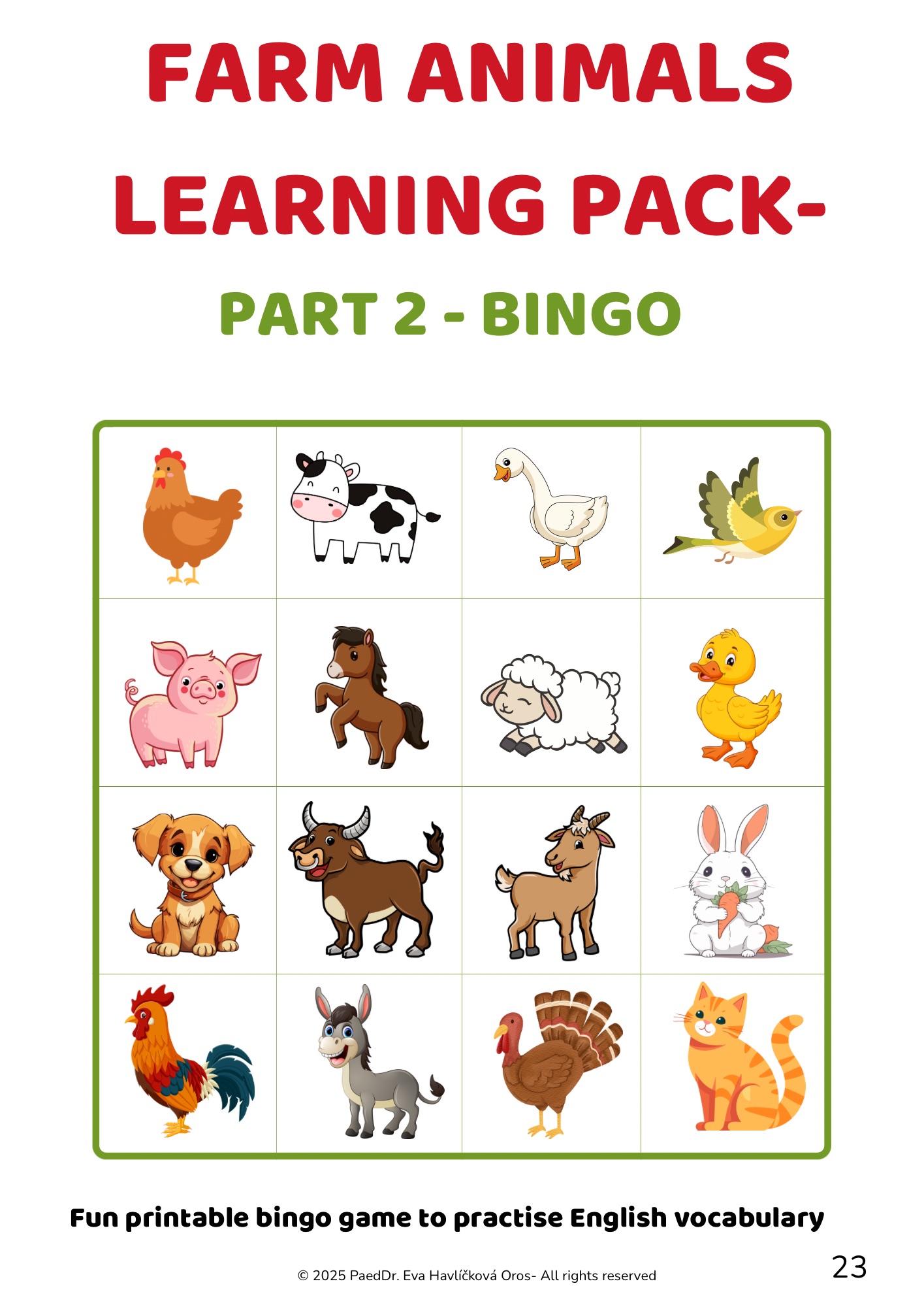 Farm Animals Learning Pack – Zvířata na farmě