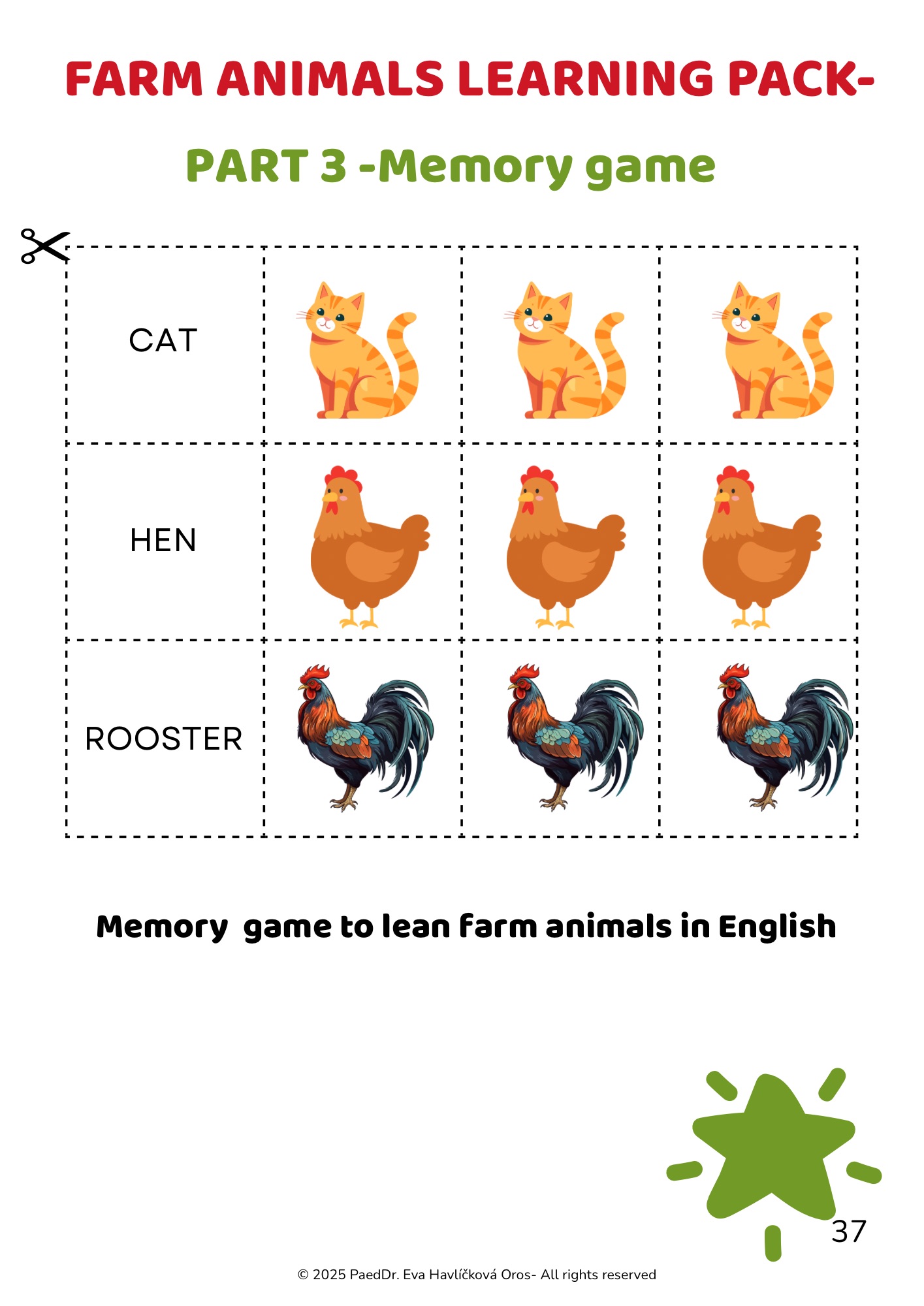 Zábavné a poutavé tisknutelné aktivity pro výuku anglických slovíček na téma zvířata na farmě.