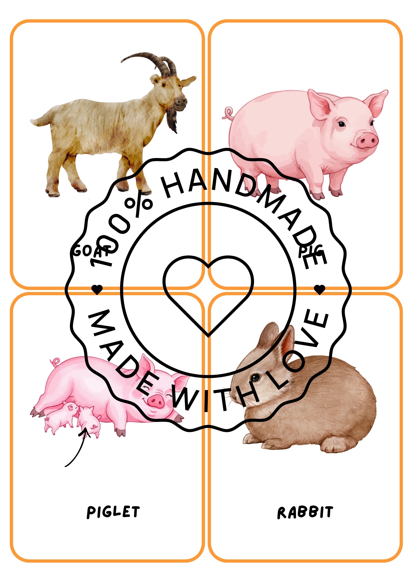 🐖 Karty slouží k rozšíření slovní zásoby na téma zvířata na farmě – děti se hravou formou seznámí s pojmy jako cow, horse, pig, sheep, chicken, duck, goat, rabbit, donkey, goose a další. Skvělé pro jazykové aktivity, popis obrázků, přiřazování mláďat k rodičům, nebo jako inspirace pro výtvarné činnosti. Vhodné pro mateřské školy, 1. stupeň ZŠ, nebo jako veselá výzdoba nástěnky či učebny s hravou atmosférou venkova.