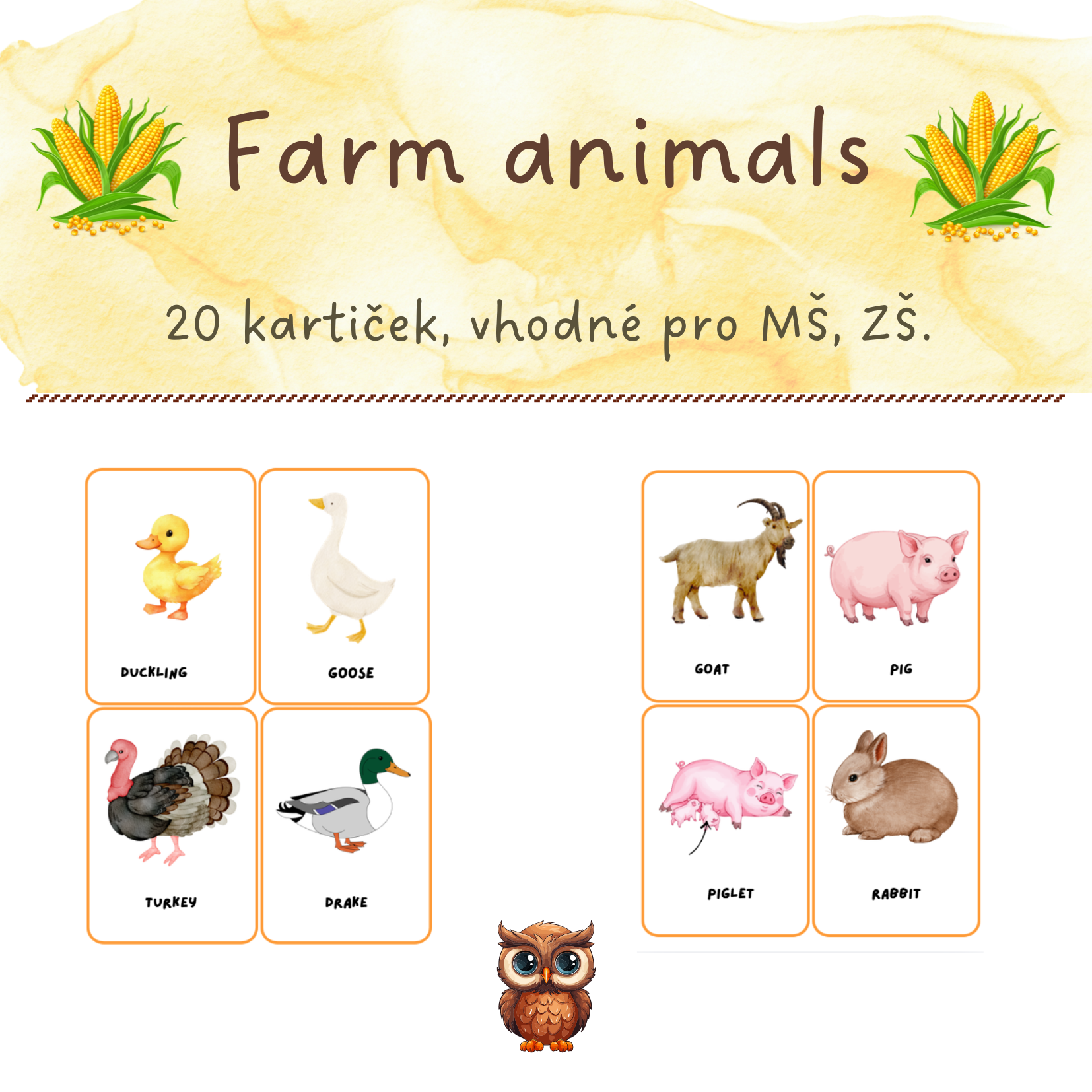 Karty s tématem Farm Animals pomohou dětem objevovat zvířata na farmě, rozšíří jejich slovní zásobu a zpestří každou hodinu. Jsou vhodné pro MŠ i ZŠ.