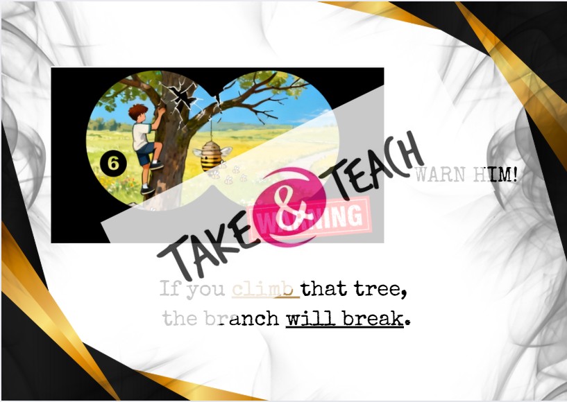 - úvodní prezentaci 7 slidů (observace obrázku) s návazností na vyvození podmínkových vět (1st conditional)