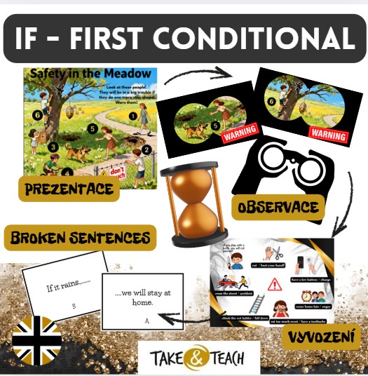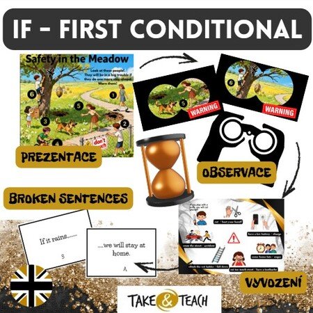 Seznamte žáky nebo s nimi procvičte podmínkové věty - FIRST CONDITIONAL. Materiál je koncipován jako 1 vyučovací hodina - observace, vyvození, gram. pravidla, příkladové věty, procvičování (broken sentences).