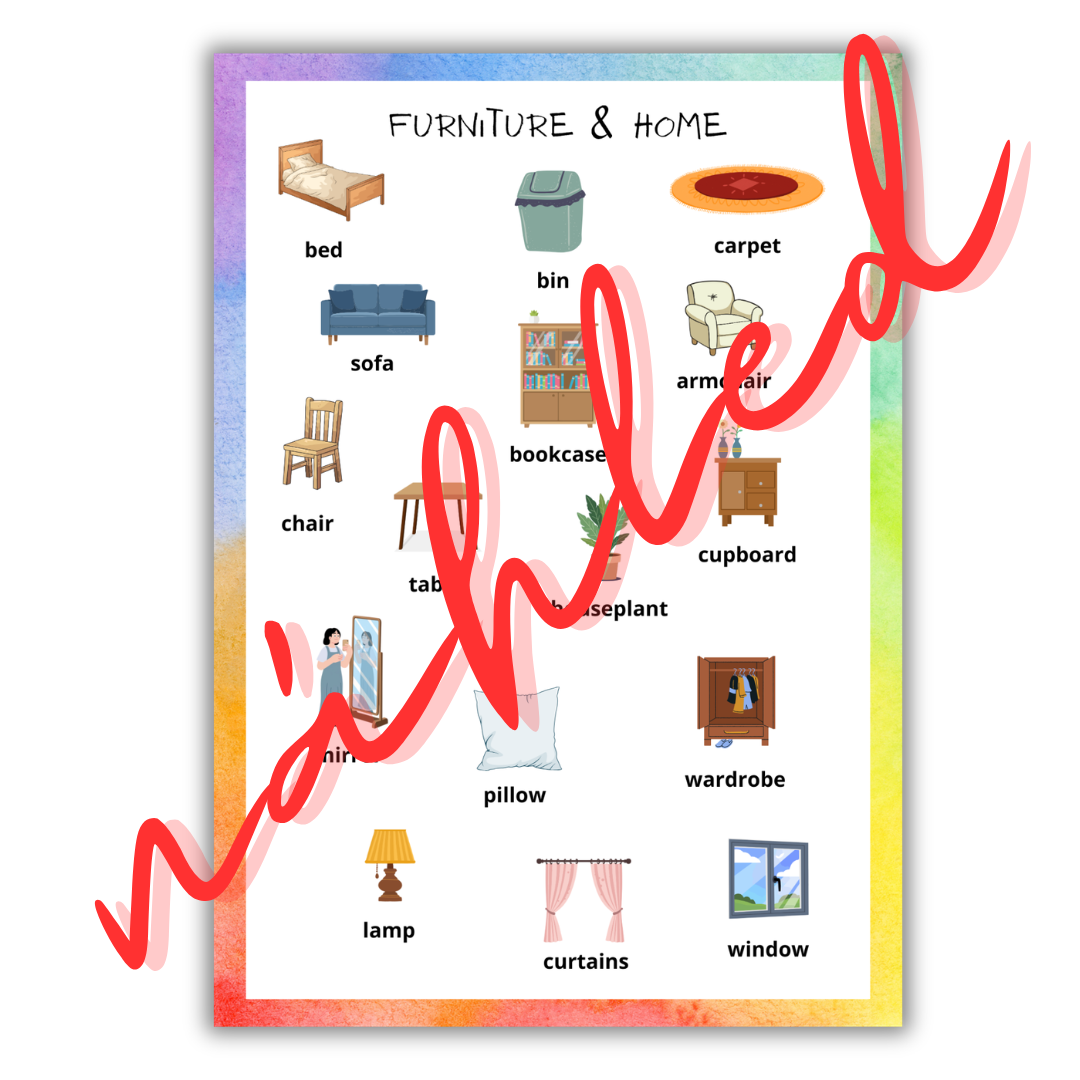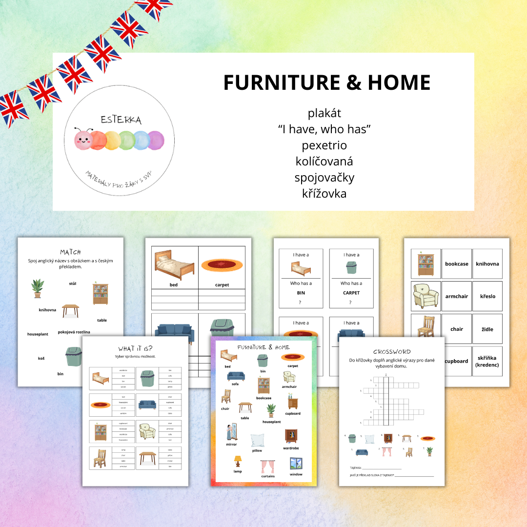 Tato brožura je vzdělávacím materiálem pro ZŠ s tématem FURNITURE & HOME. Najdete tu plakát s 16 obrázky vybavení domu, pracovní listy a 2x hry na zábavné procvičování. Žáci si osvojí slovní zásobu tématu, rozvíjejí gramatiku anglických slovíček a český překlad. Materiál rozvíjí i schopnost spolupráce při skupinové práci a žáky učí i "fair play" při vzdělávacích hrách, které jsou určené k procvičování anglické slovní zásoby.