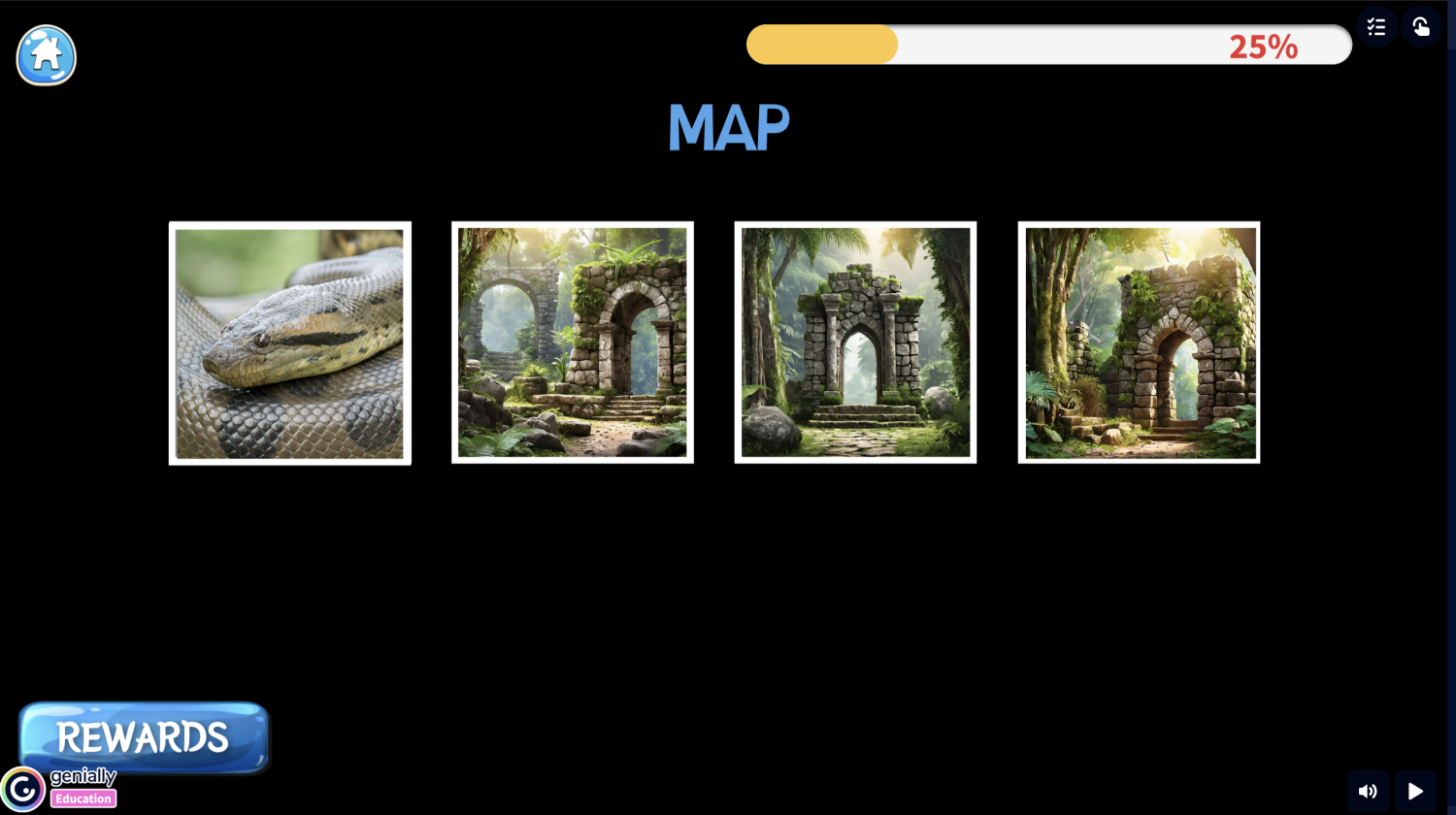 Za každou splněnou část získá žák jedno z divokých zvířat (obrázek). Na závěr získá lva jako krále zvířat. V průběhu hry mohou žáci sledovat vpravo nahoře svůj postup a také mají přehled o tom, kolik pohárů už získali. Vše je pěkně graficky znázorněno (viz fotogalerie).