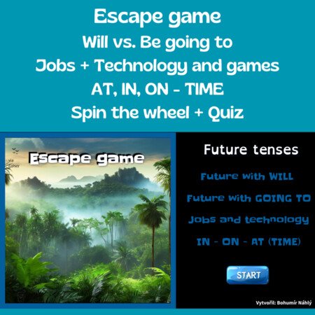 Materiál je zaměřen na učivo Future tenses a to zejména Will vs. Be going to. Okrajově se objeví i present continuous for future. Dále časové předložky at, in, on a slovní zásoba na Jobs a Technology and games.