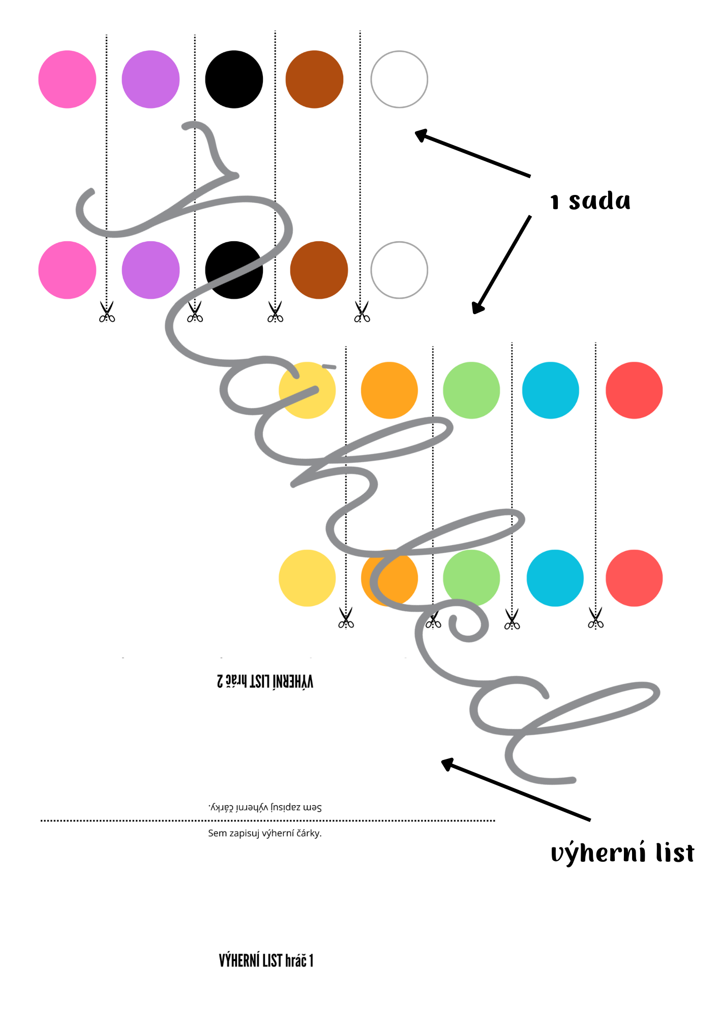 - Sadu proužků s barvami (k vystřižení, připravené k jedné sadě).