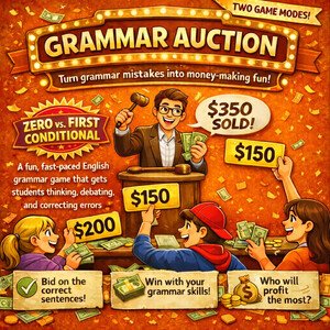 Máte už dost Kahootu? Tento materiál nabízí zábavnou aukční aktivitu zaměřenou na komparativy a superlativy v angličtině. Studenti v aukcích soutěží o správné věty a obhajují svá rozhodnutí čímž se učí gramatiku v kontextu. Dva herní módy.