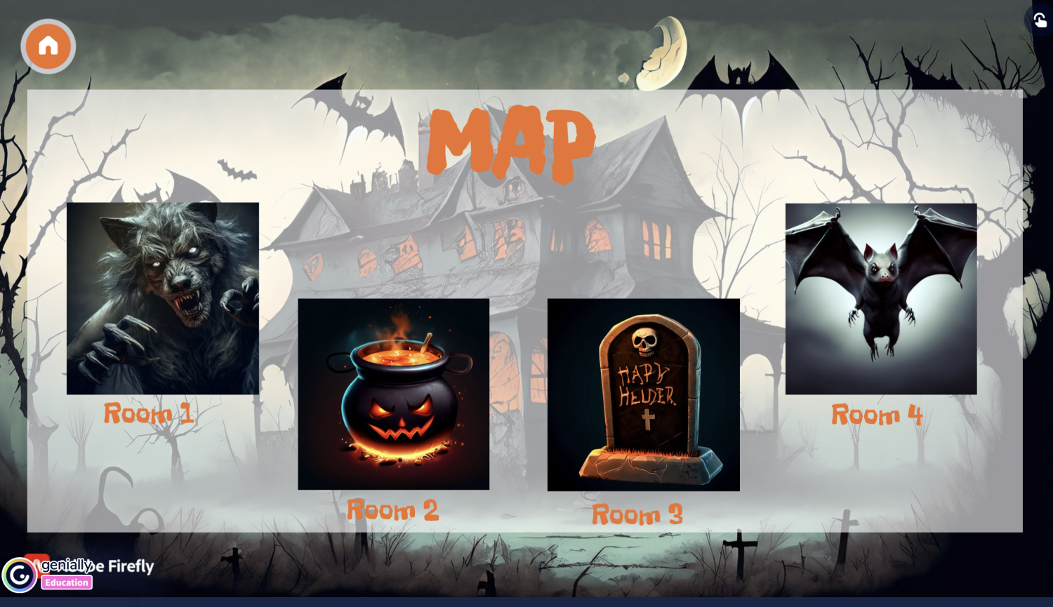 Tematicky jsem se samozřejmě rozhodl pro strašidelný dům. Splněním úkolu se žáci dostanou z dané místnosti a pokračují dále.