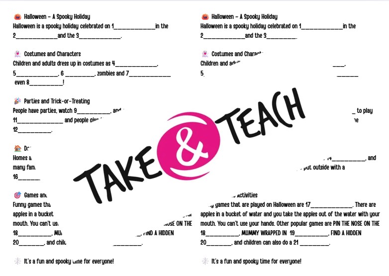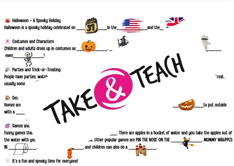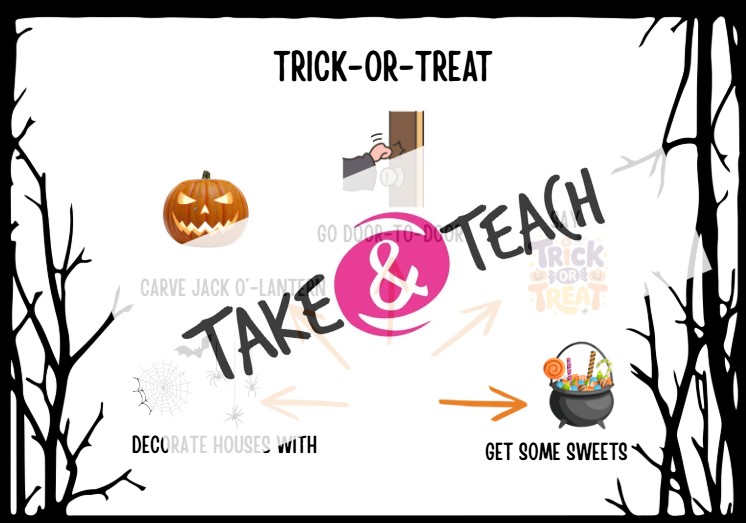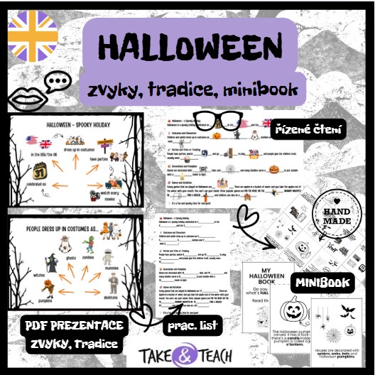 Připoměňte nebo seznamte žáky se zvyky a tradicemi svátku Halloween, procvičte základní slovní zásobu a aktivity spojené s tradicemi (konverzace, řízené čtení), složte si minibook s příběhem svátku a nechte žáky vypracovat úkoly.