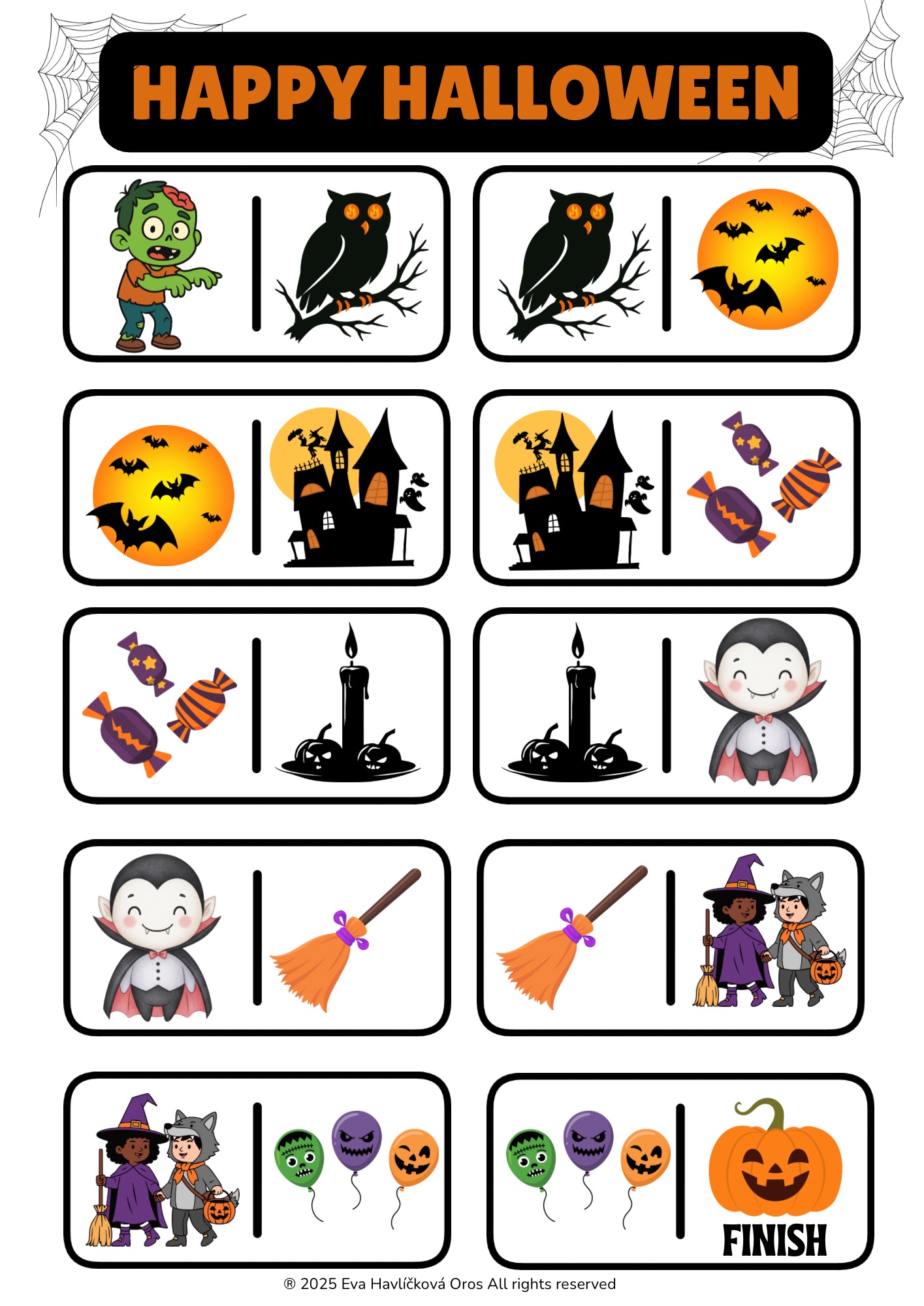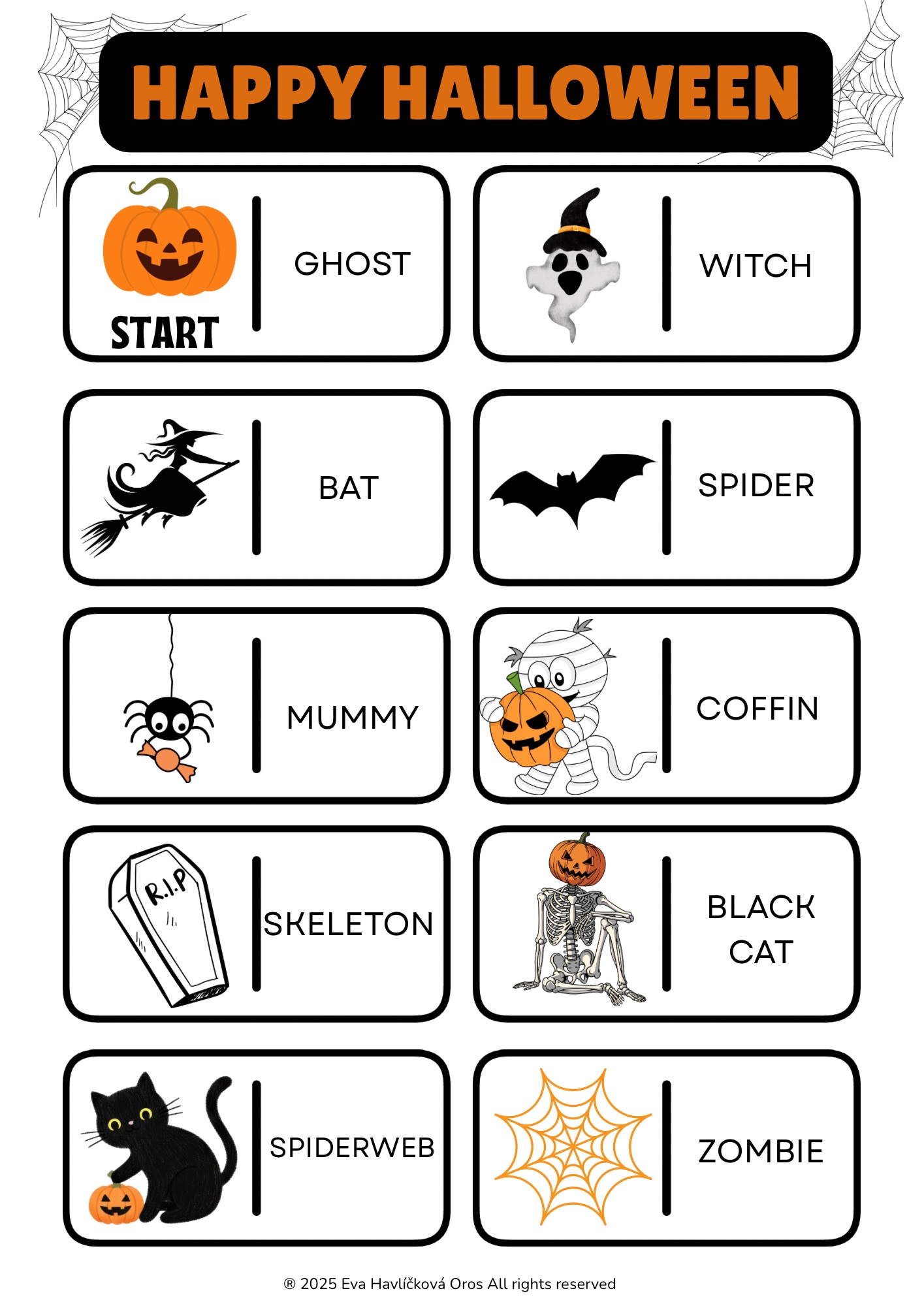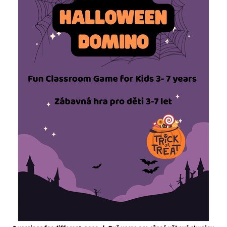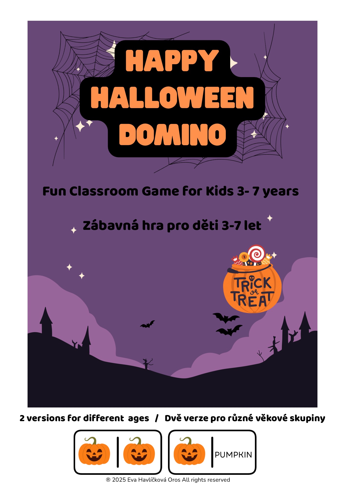 Skvěle doplňuje další materiály z řady Happy Halloween – Flashcards a Pexeso (Memory Game). Společně tvoří kompletní balíček aktivit pro výuku angličtiny hravou formou.