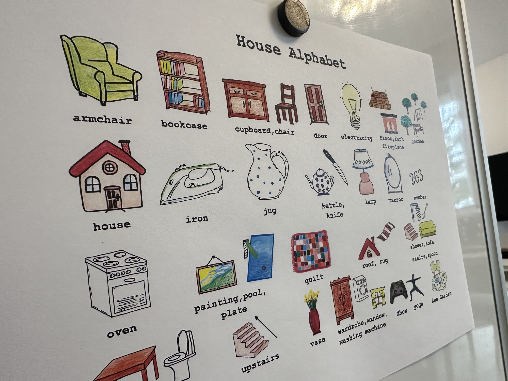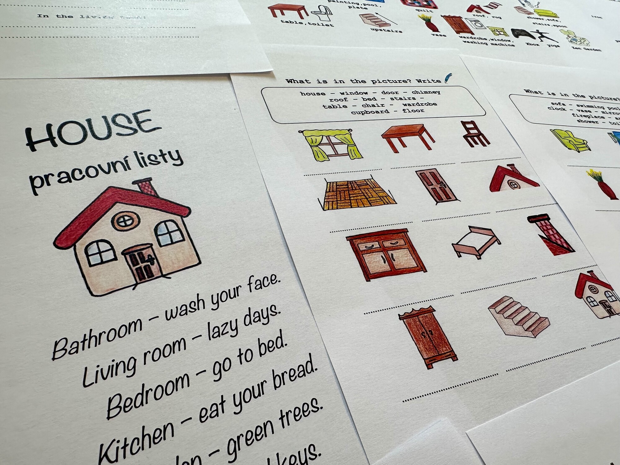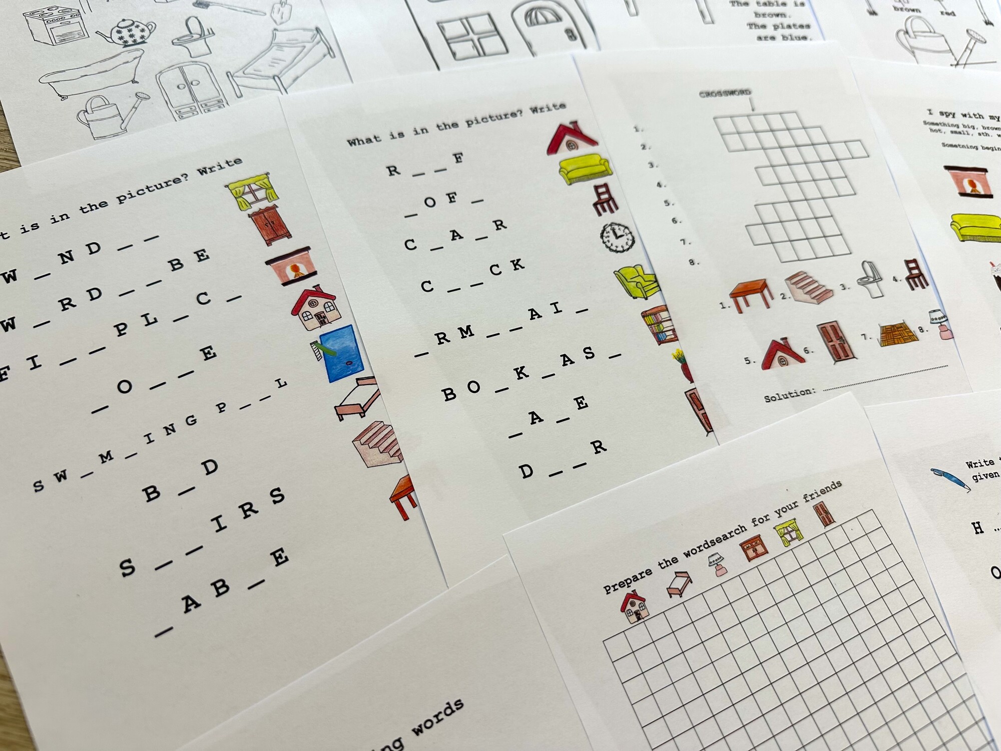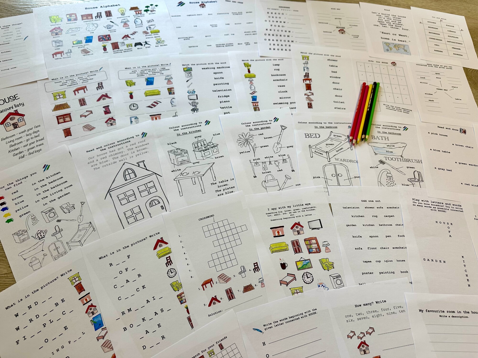 Procvičení slovní zásoby, psaní, čtení. Kreativní úkoly – křížovka, osmisměrka, vybarvování, psaní, kreslení, přesmyčky, rhymes – rýmy, hádanky, básničky, plakáty se slovíčky, myšlenkové mapy.