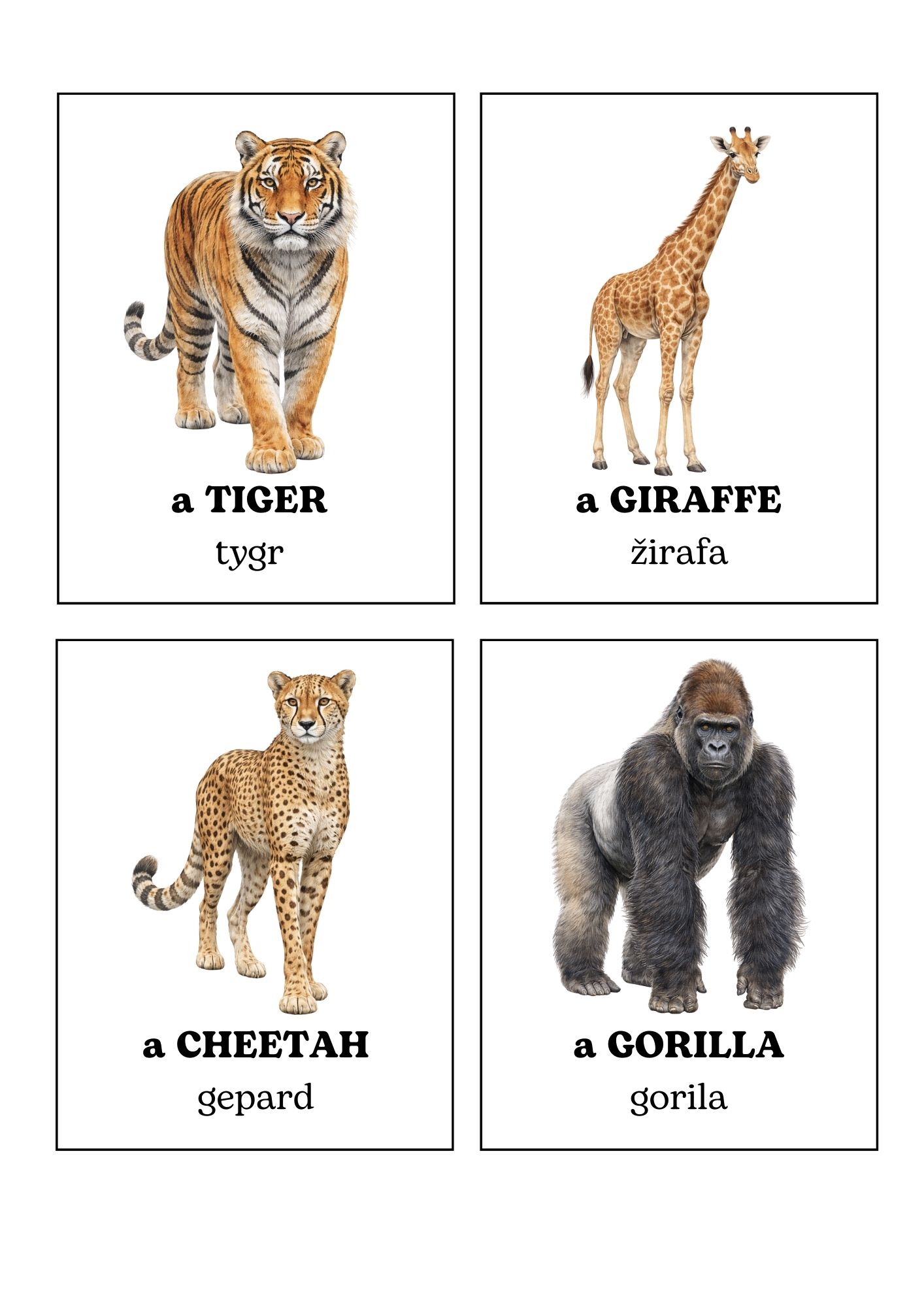 Materiál je vhodný jako doplněk výuky angličtiny, do tematických projektů „Zvířata světa“ nebo jako hravé opakování slovní zásoby.