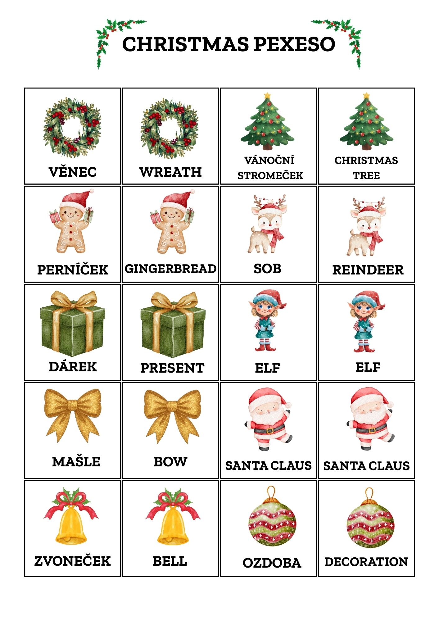 - Vánoční pexeso – procvičení slovní zásoby formou hry