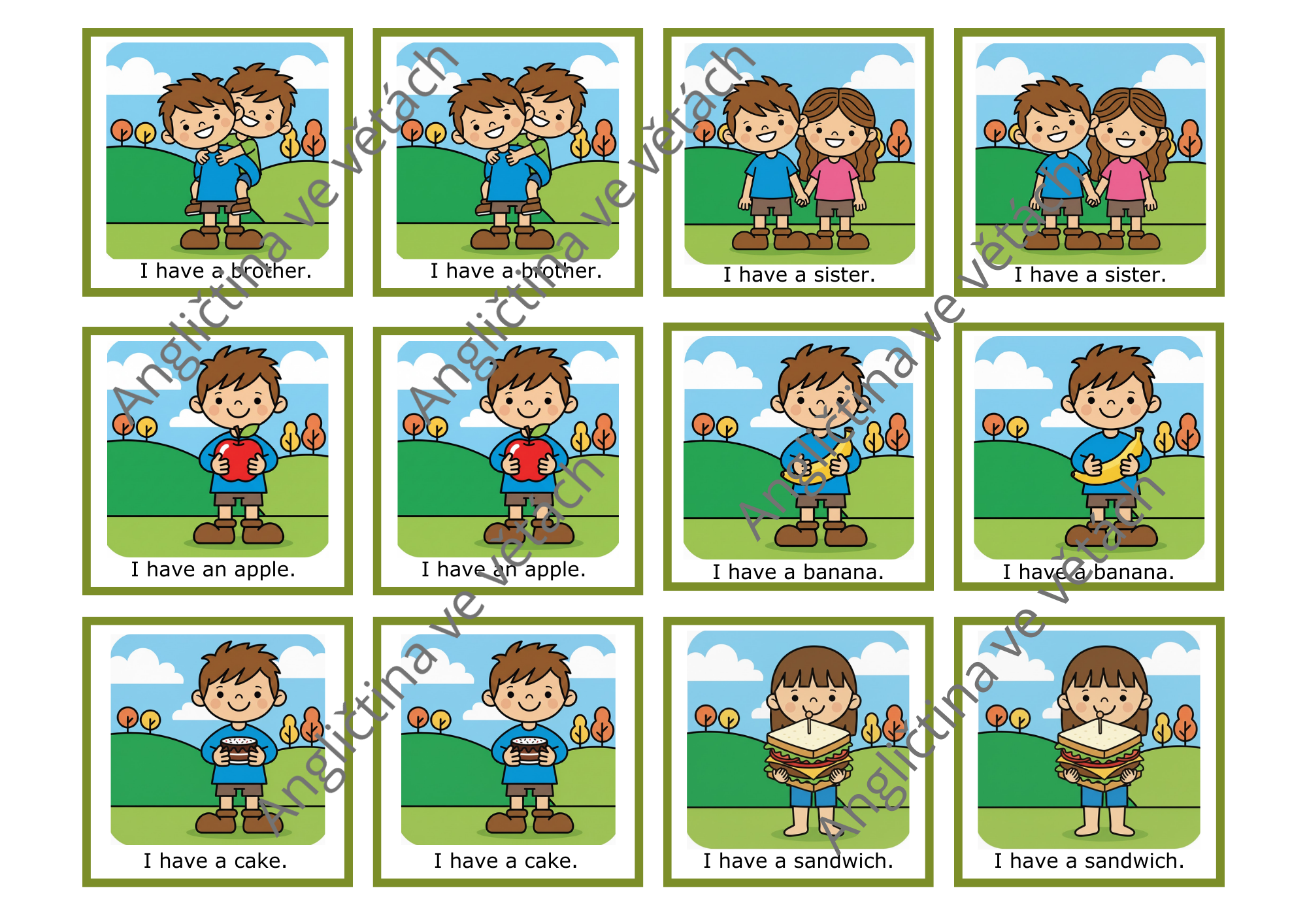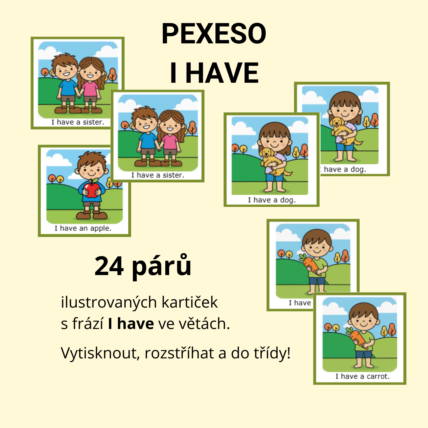 Základní věty pro děti. 48 kartiček - 24 párů vět.