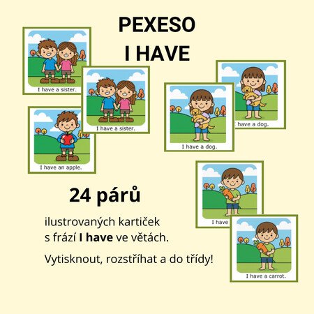 Jednoduché věty pro začátečníky - všechny s frází I HAVE + podstatné jméno.