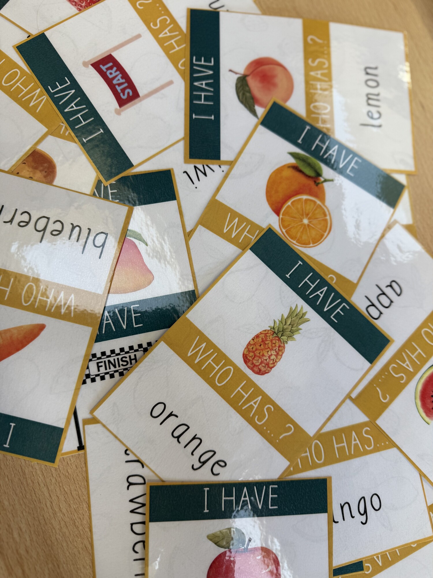 Následně děti říkají: „I have…, who has…?,” vždy následuje žák, který má v horní části