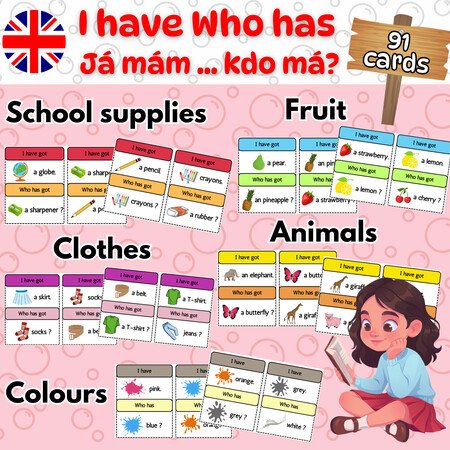 Oblíbená hra Já mám...Kdo má v angličtině pomáhá procvičovat si slovní zásobu, zvyšuje pozornost dětí a spolupráci ve skupině.