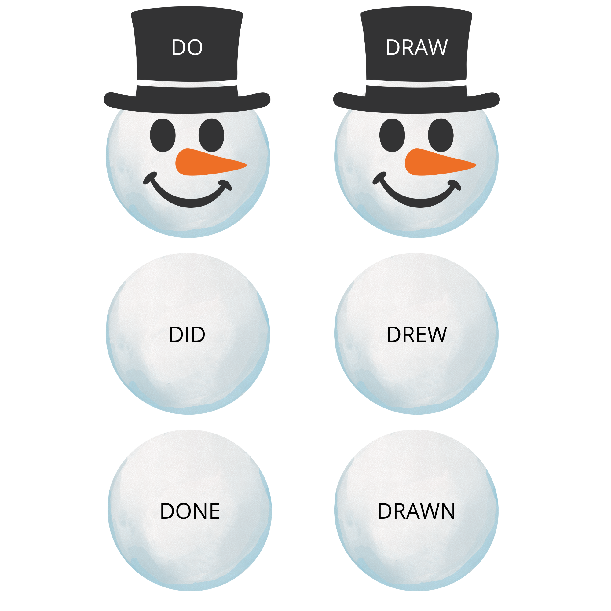❄️ Irregular Verbs: Build-a-Snowman (52 Sloves)