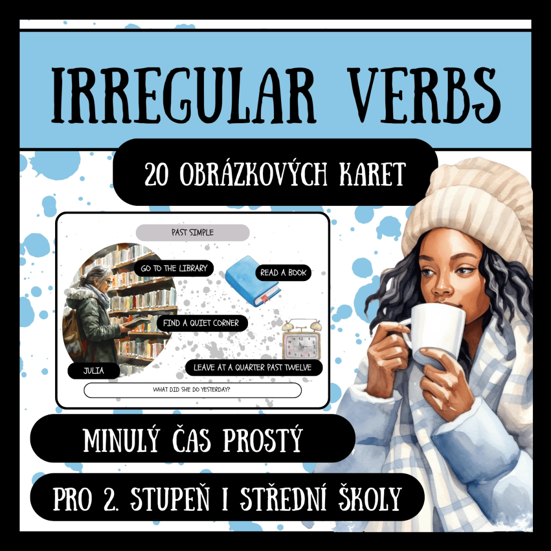 V materiálu naleznete 20 obrázkových karet k procvičení nepravidelných sloves v minulém čase. Doporučuji karty barevně vytisknout a zalaminovat, tak budete moci s kartami pracovat i v budoucnu.