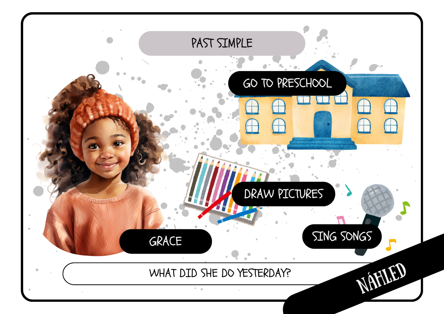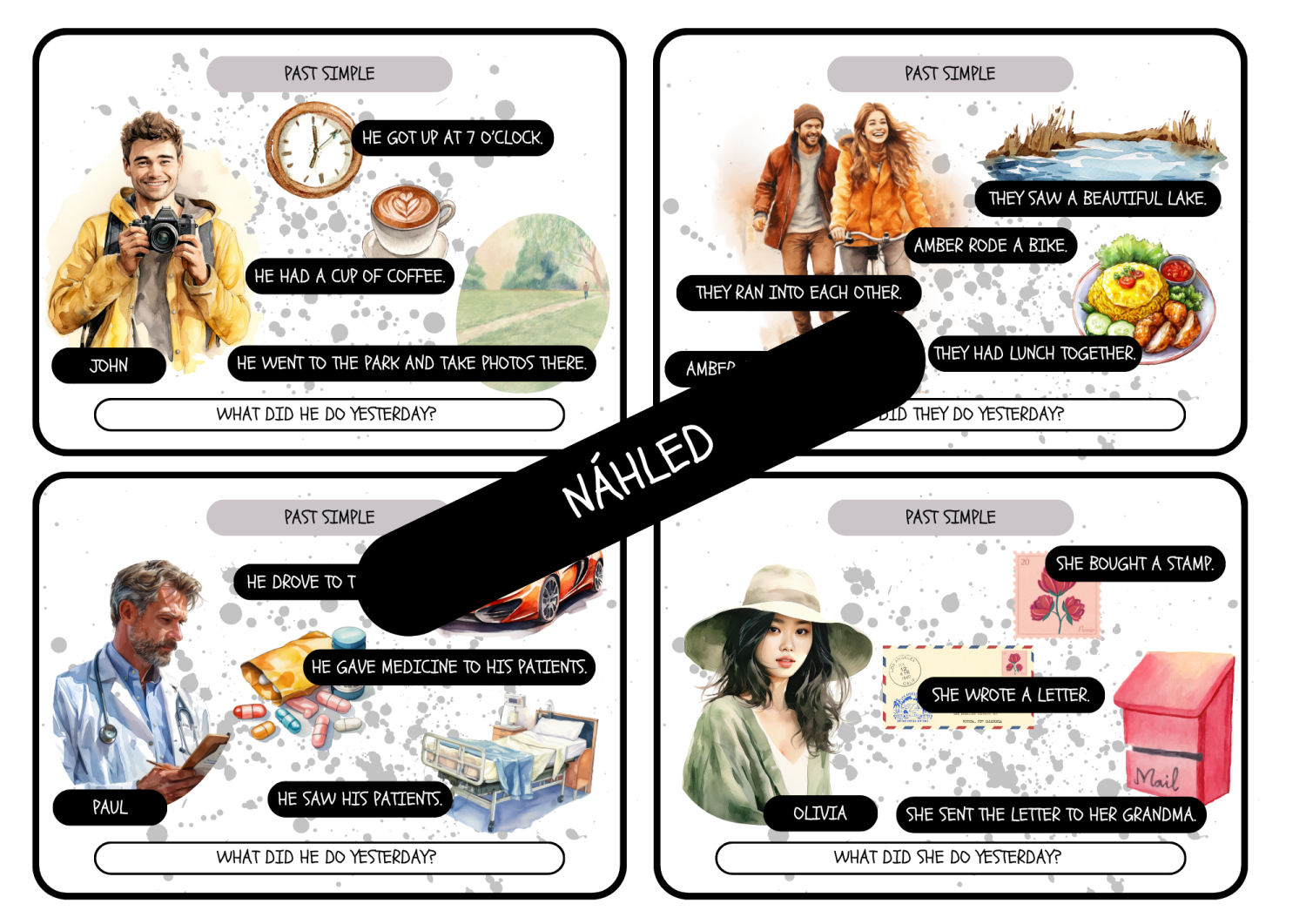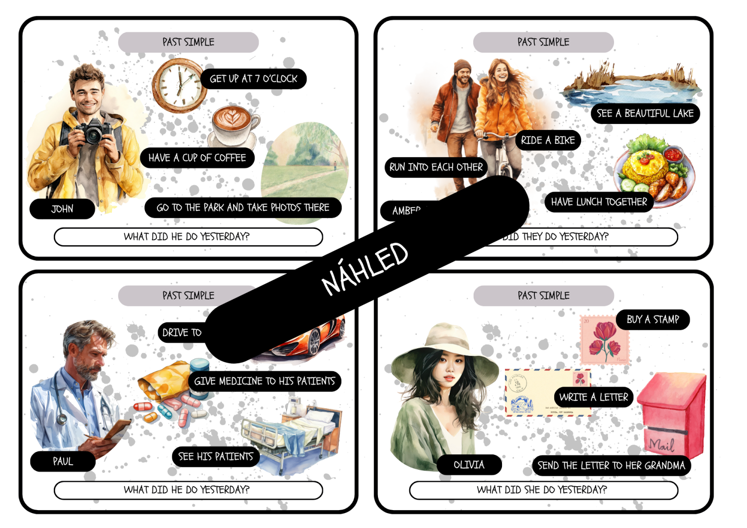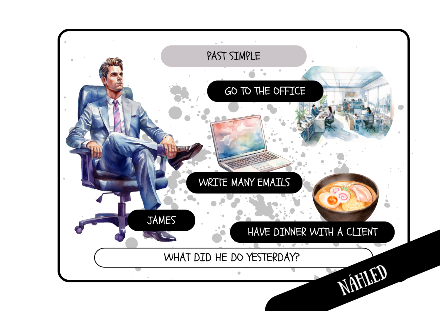 Studenti obdrží kartu a jejich úkolem je převést nápovědy do minulého času prostého.