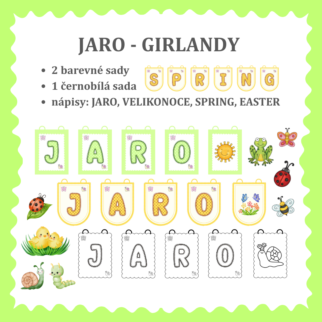 - 3 druhy jarních girland (2 barevné sady a 1 černobílá)