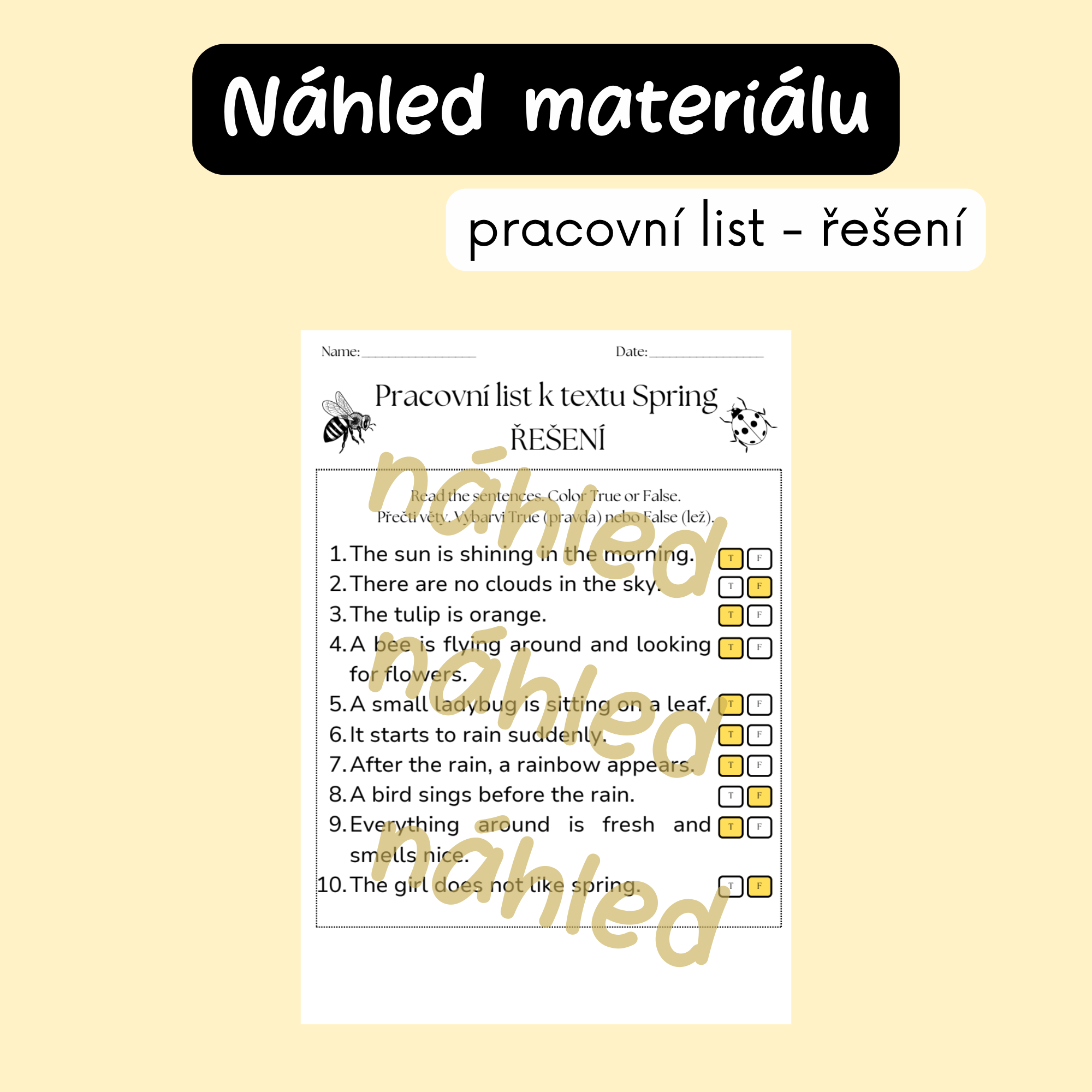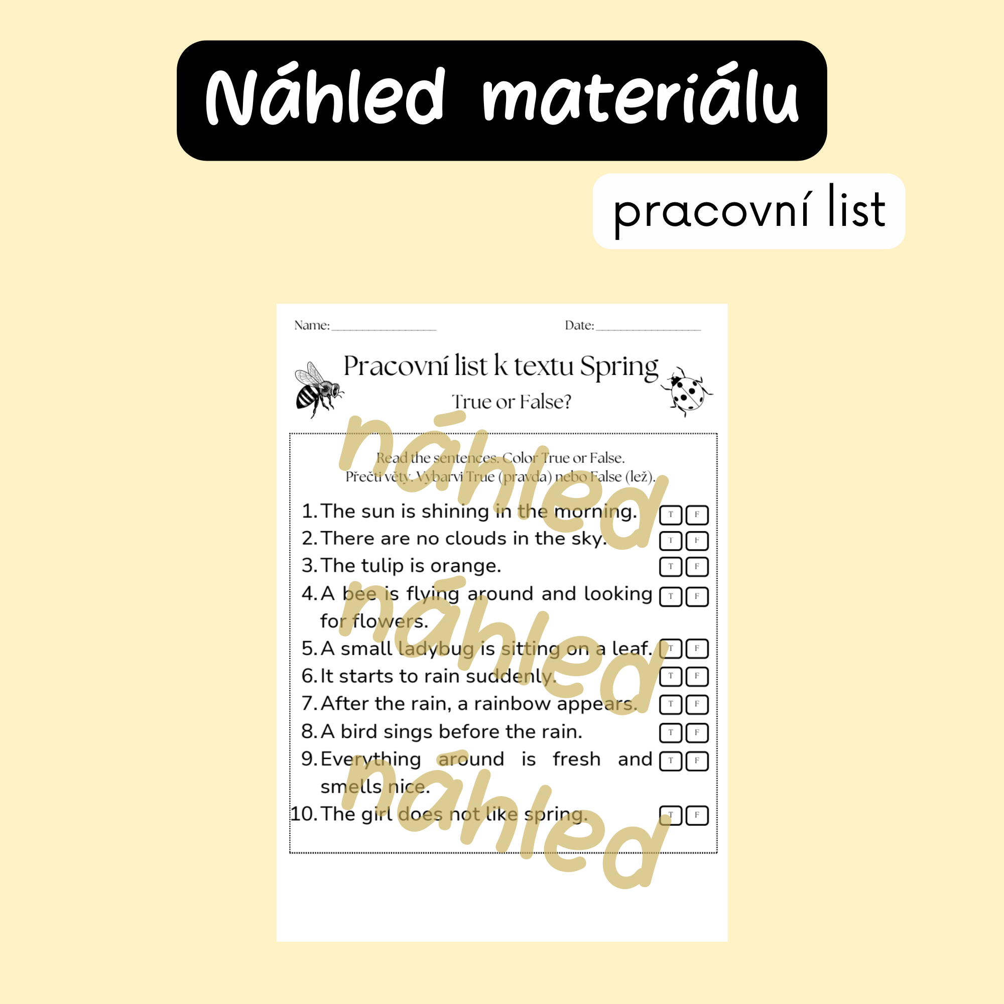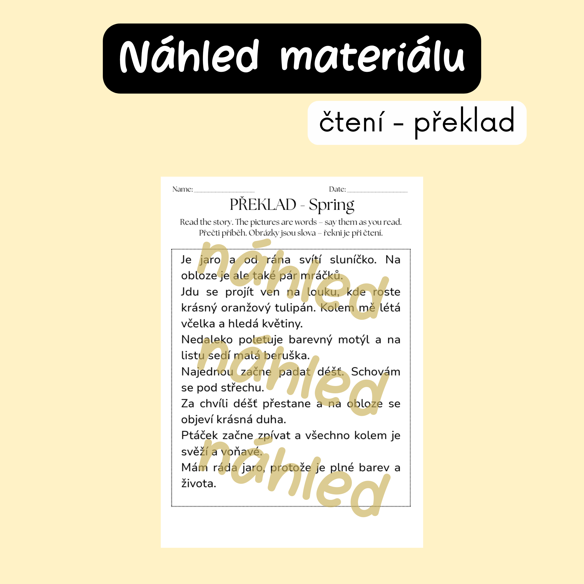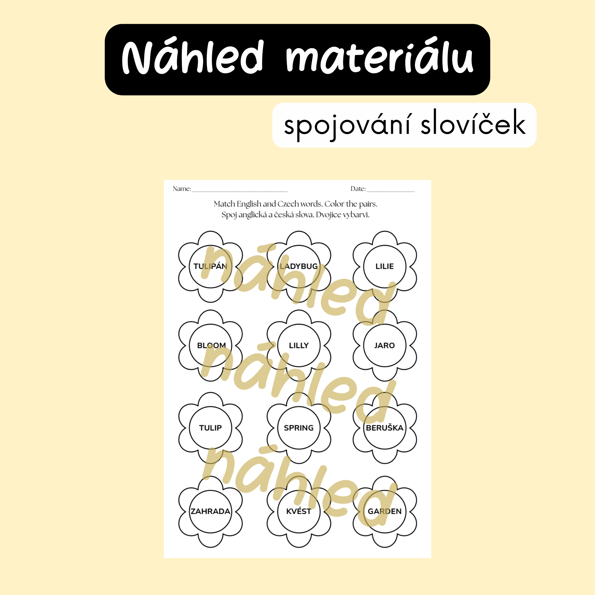 - Anglickou slovní zásobu (spring vocabulary)