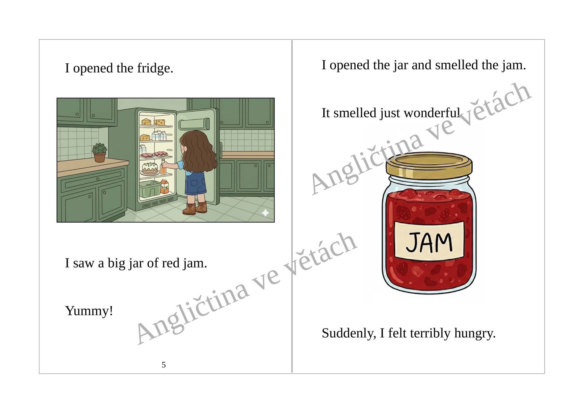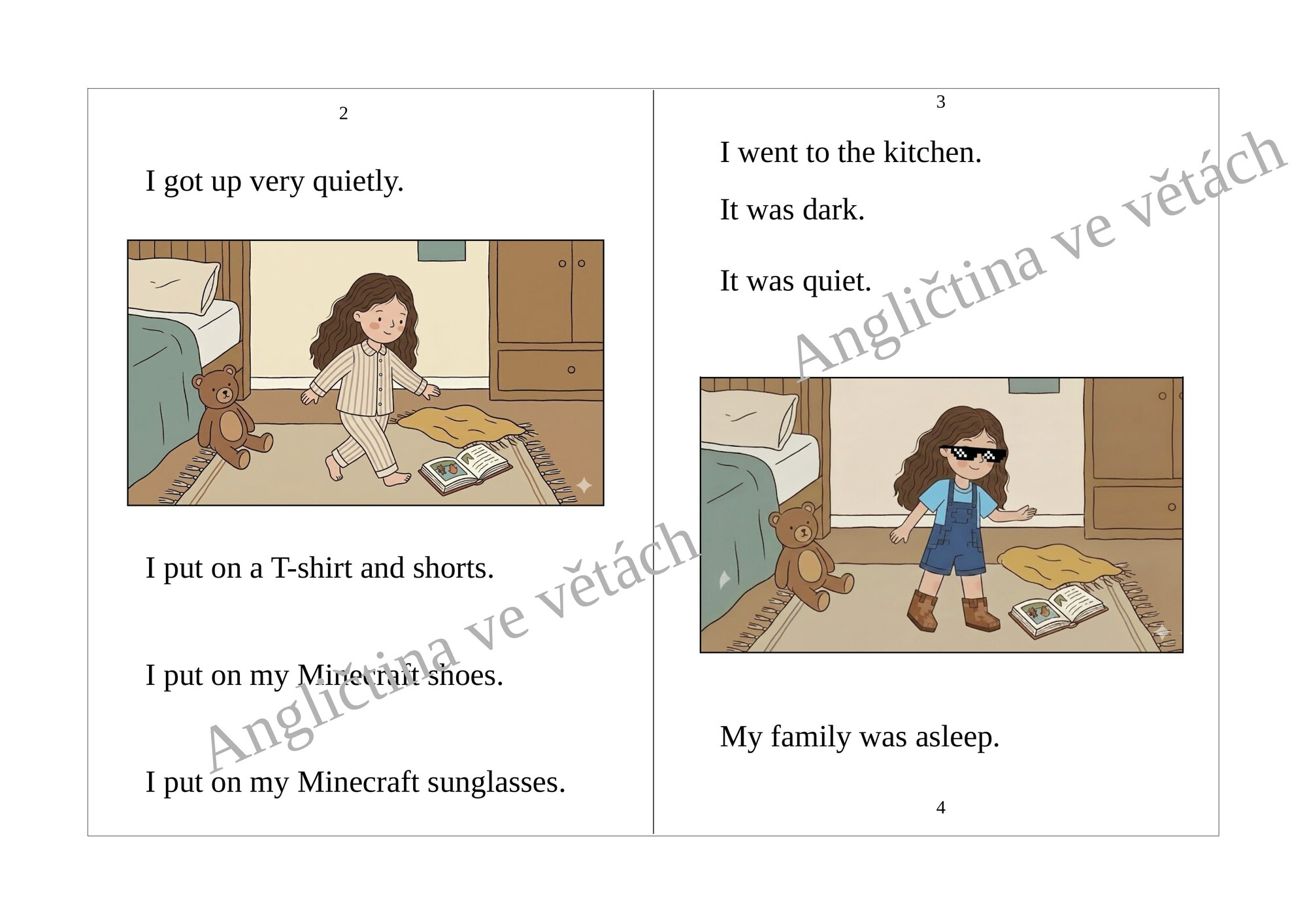 Nejdůležitějším prvkem této sady je jednoduchá ilustrovaná knížečka - první čtení - taková první minibeletrie v angličtině.