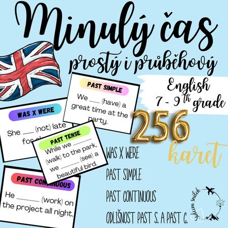 Sada 256 karet na procvičení minulého času prostého a průběhového. Nechybí ani procvičení odlišnosti těchto časů a odlišnost was s were.