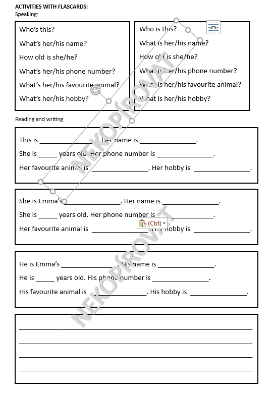 11 flashcards + 1 pracovní list (otázky k flashcards + psaní)