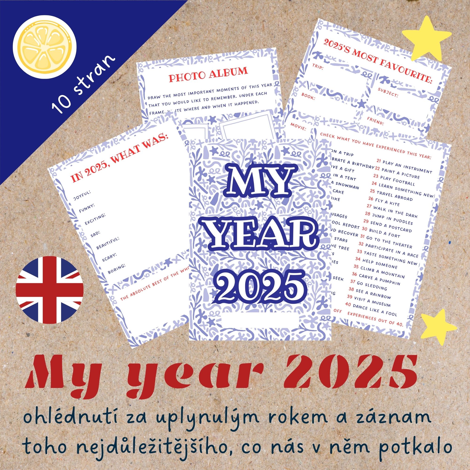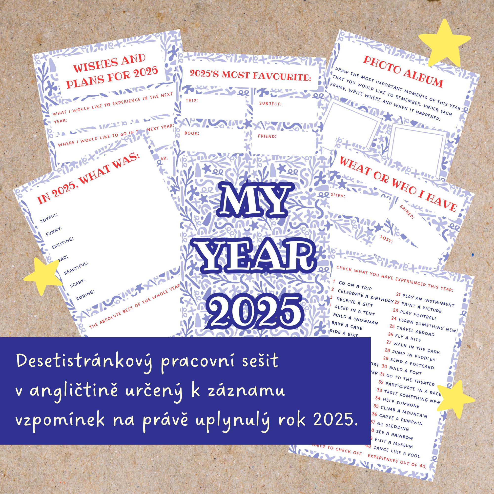 ⭐Závěr roku je skvělou příležitostí k bilancování a vzpomínání na zážitky uplynulého roku. Pracovní listy v angličtině dětem pomohou utříbit si vzpomínky a zapsat si to nejdůležitější, co se jim v životě během posledních měsíců přihodilo.