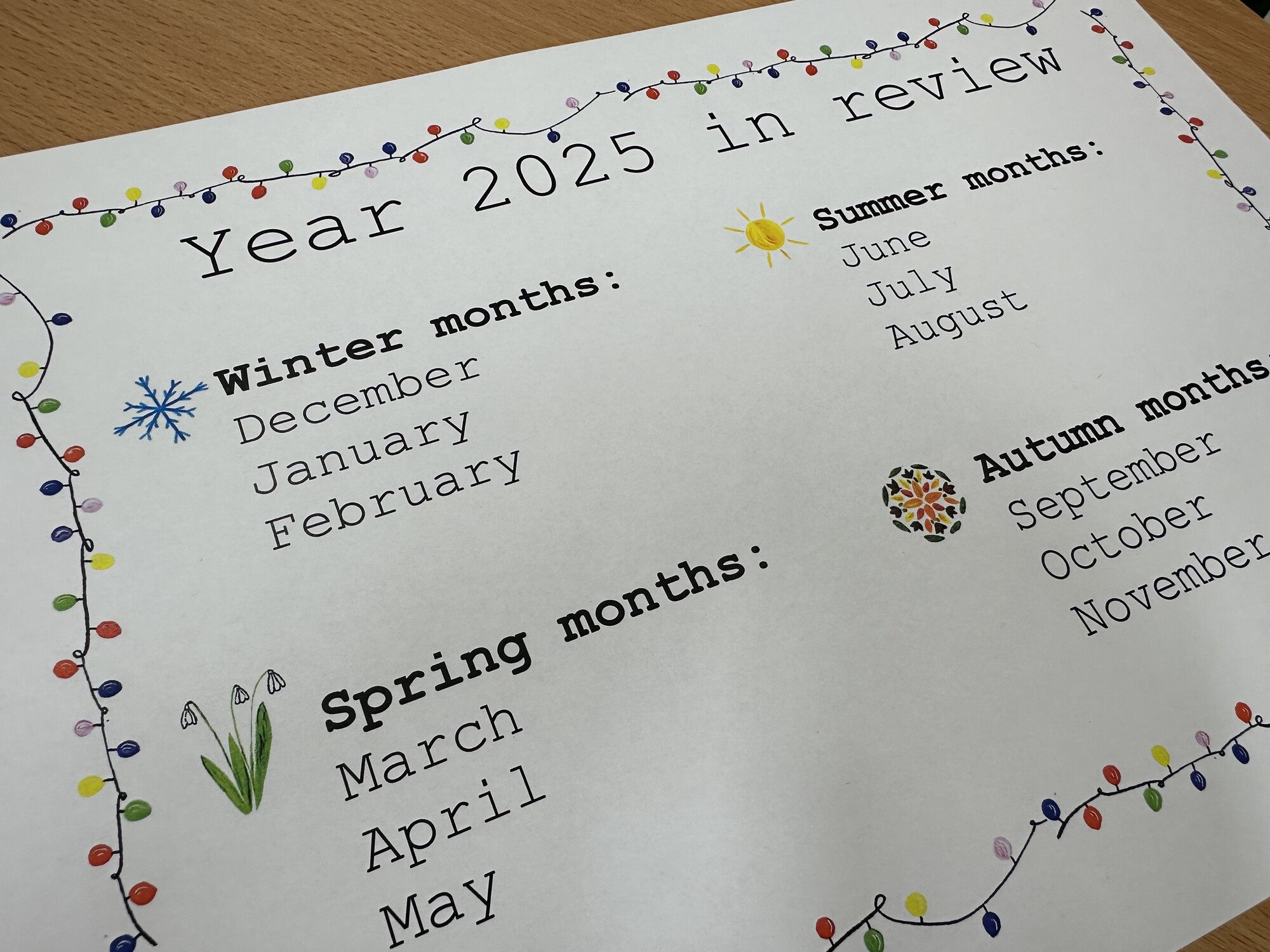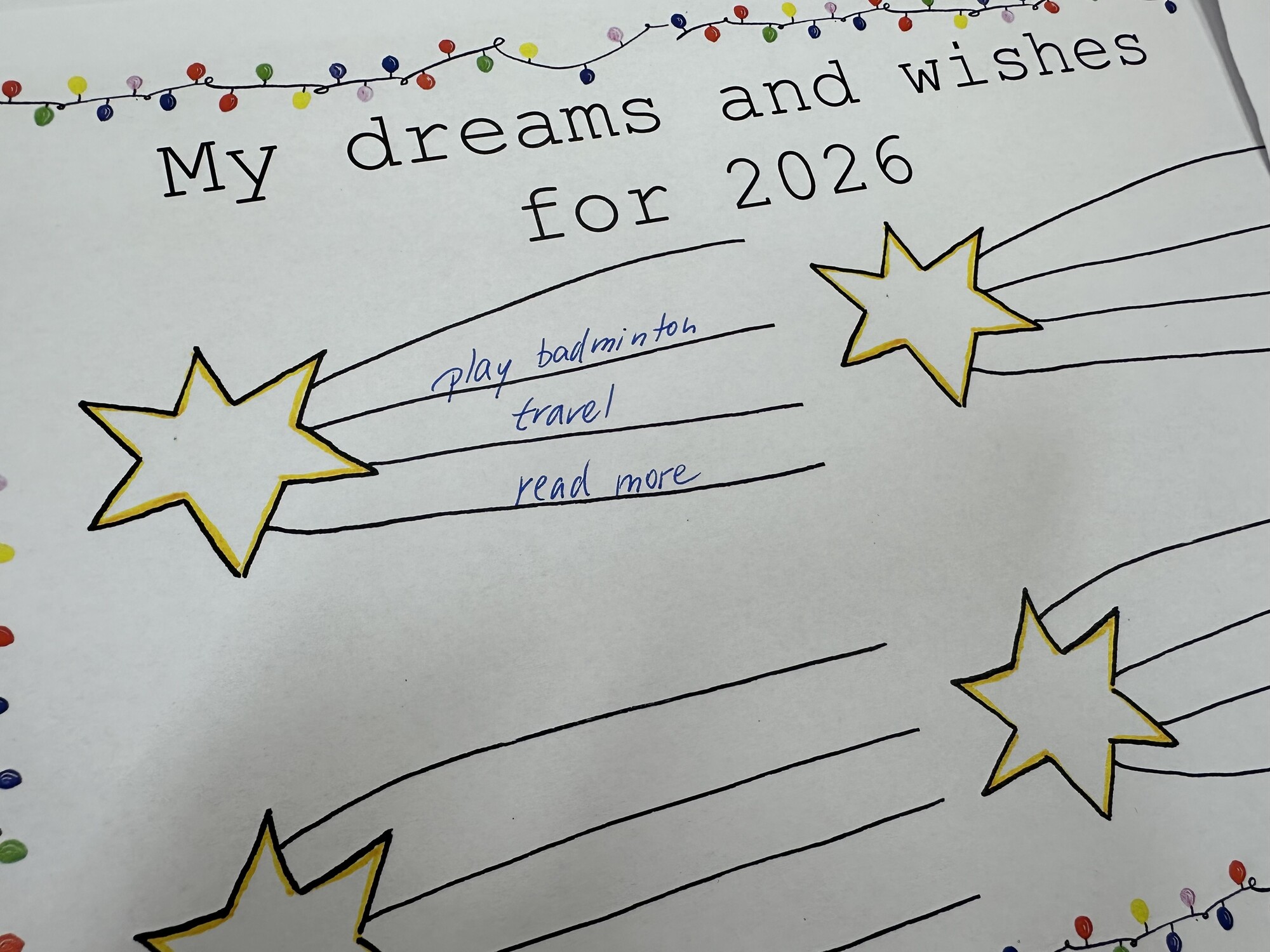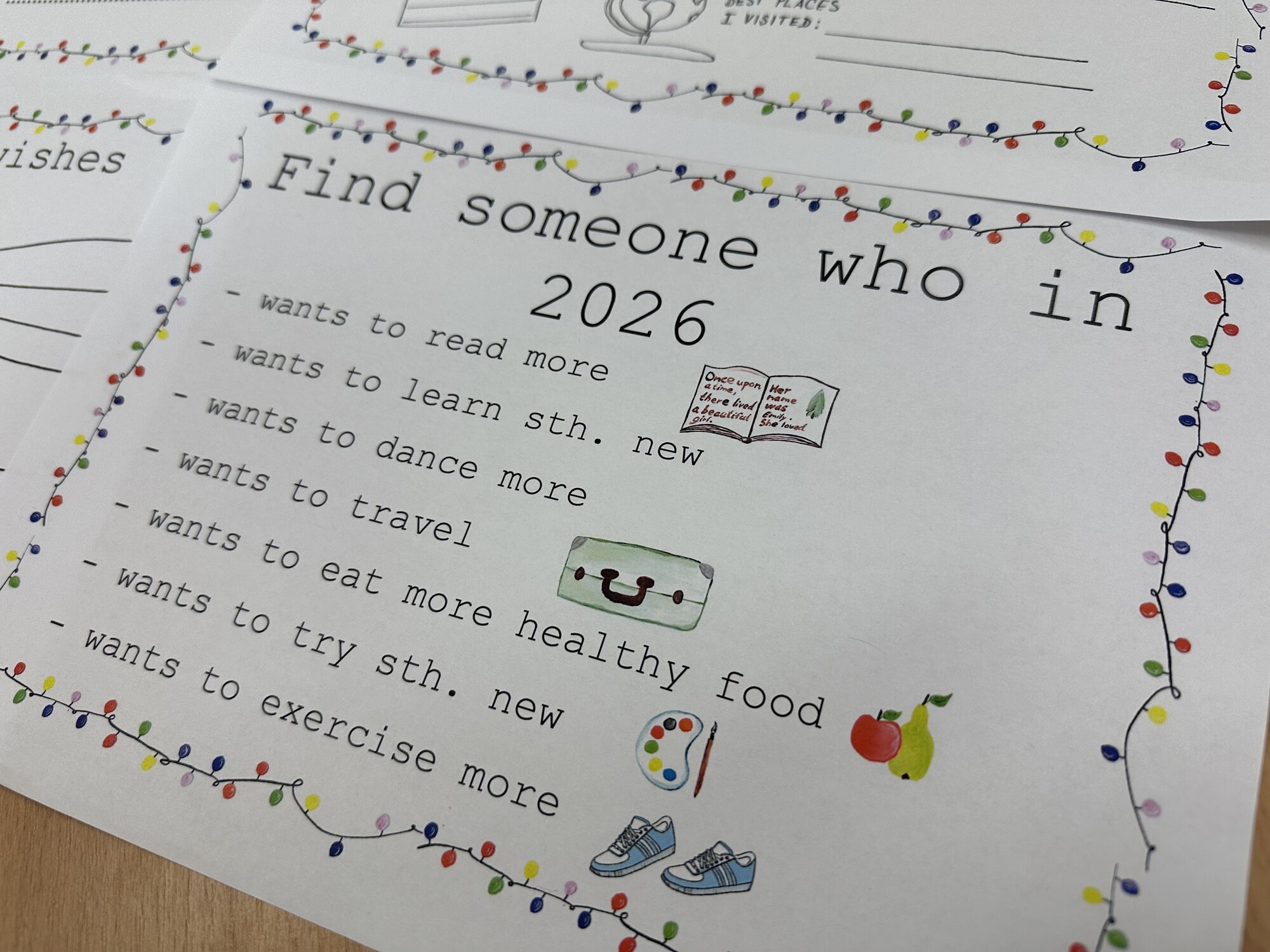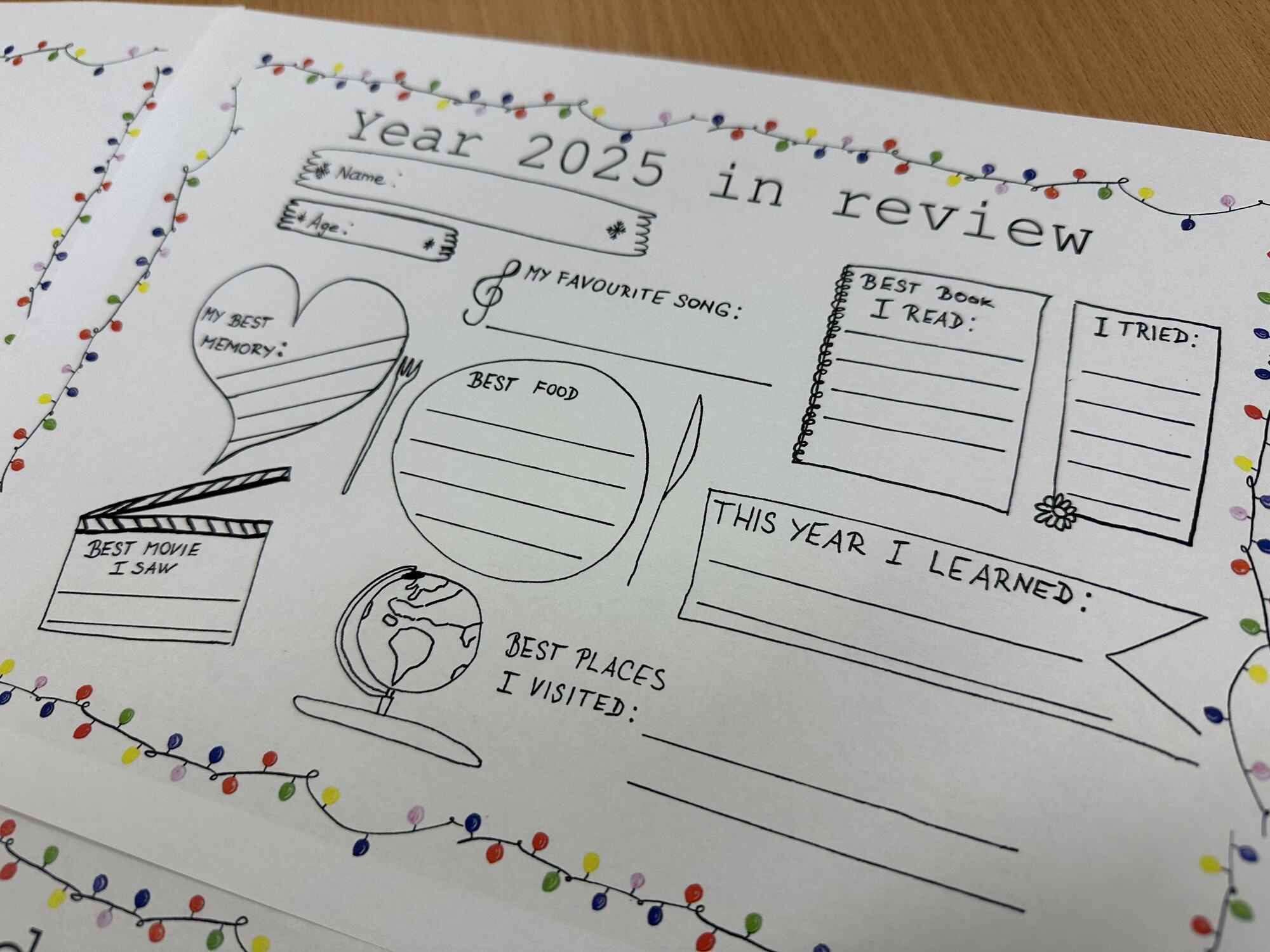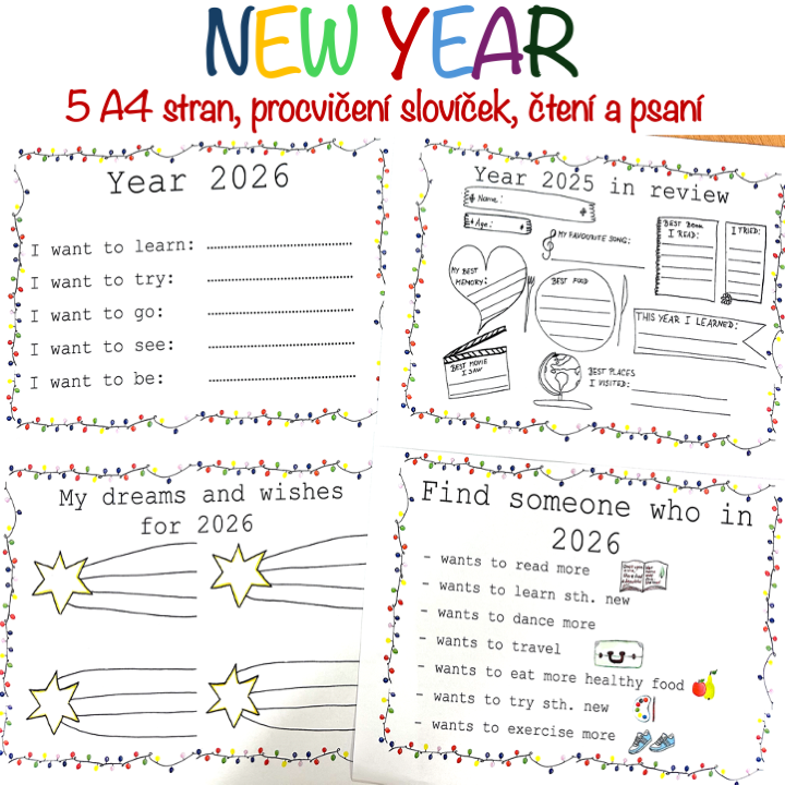 Materiál se skládá z 5 A4 stran. Děti zavzpomínají, jaké zážitky během roku prožily, napíší svá přání a plány v roce 2026. Procvičí čtení, psaní, slovíčka. Své odpovědi mohou srovnat se spolužáky, vést společně diskuzi.