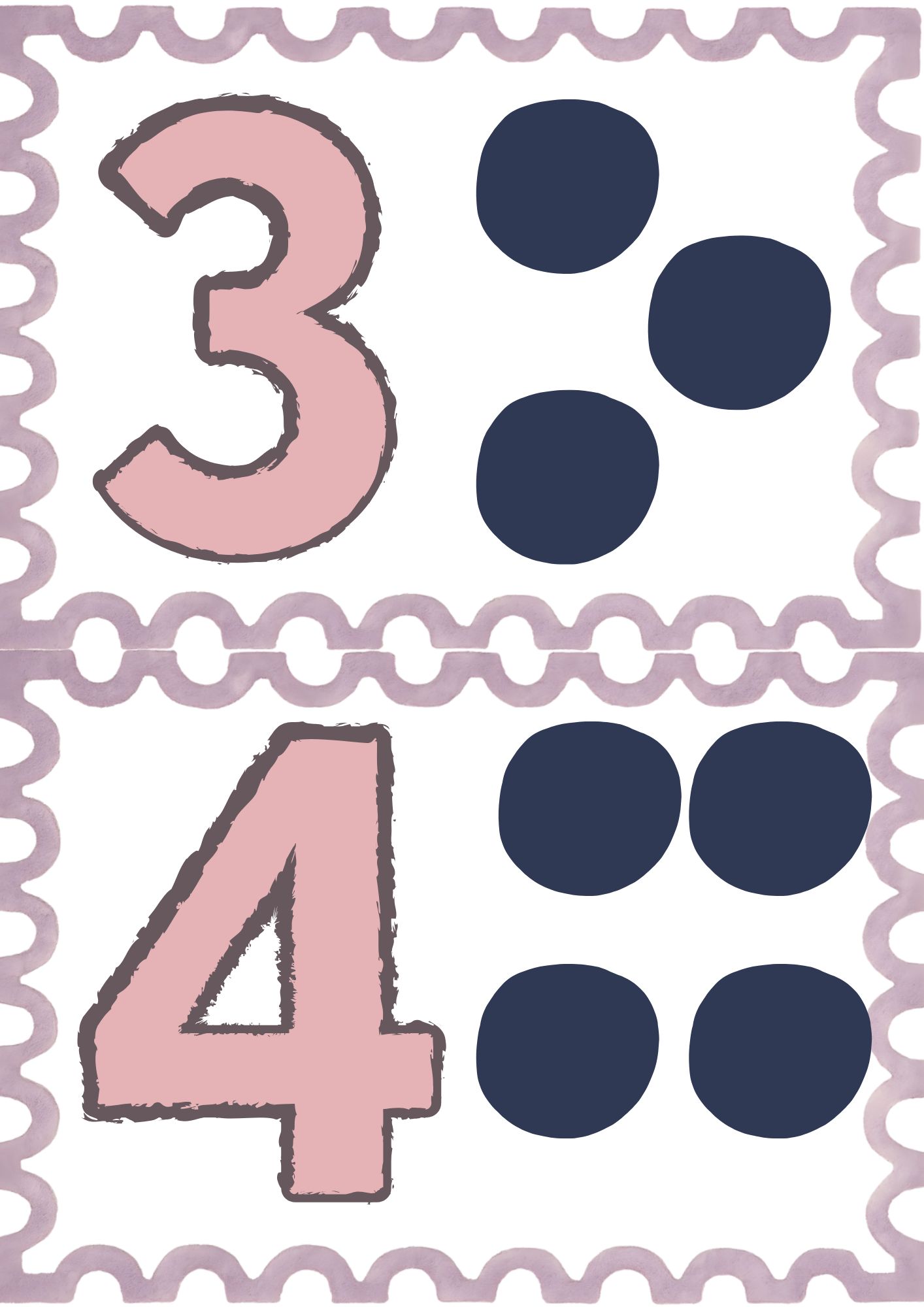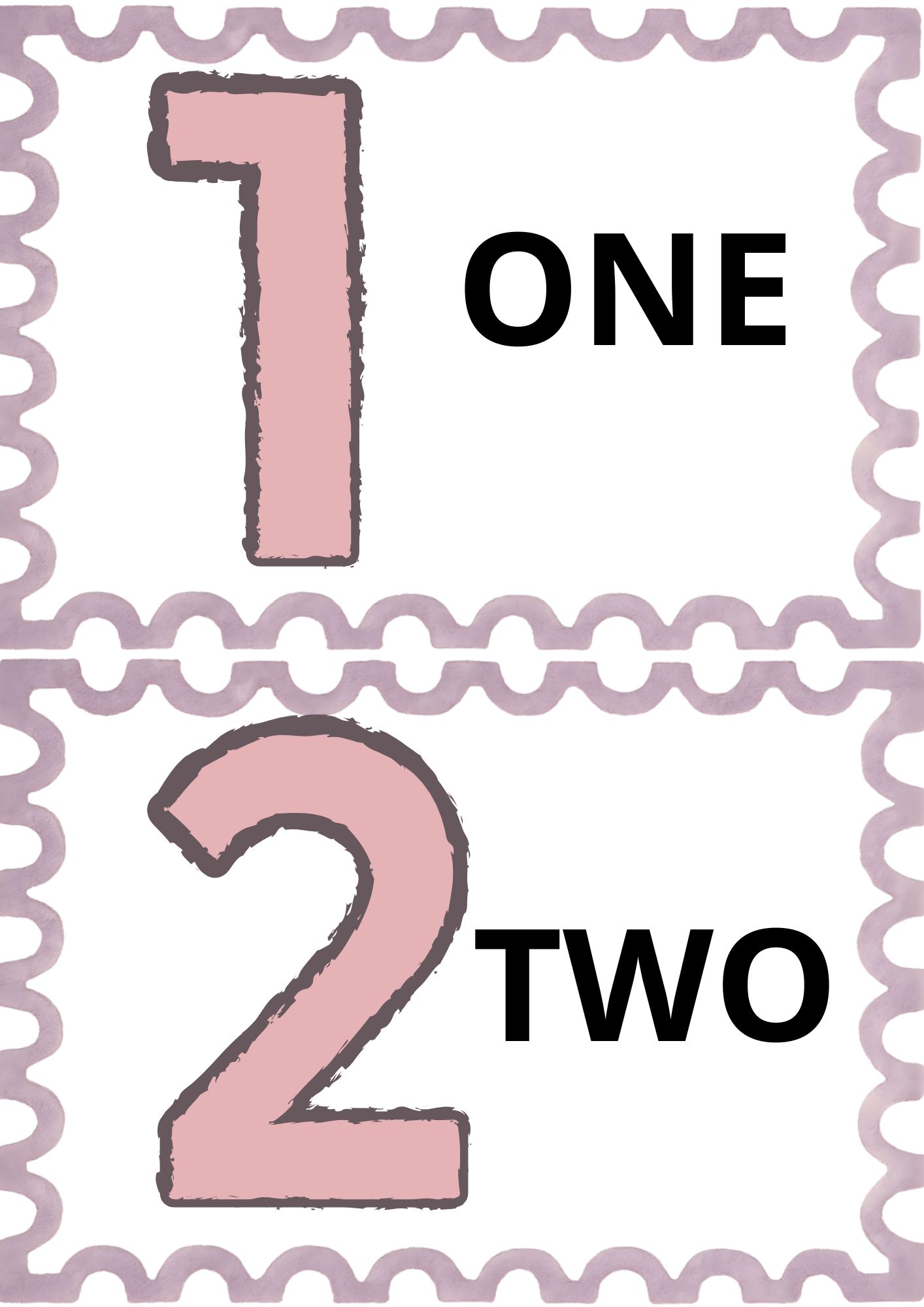 Na každé stránce je jedno číslo. Uvnitř čísla je anglický zápis daného čísla (např. one, two).