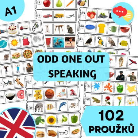Hravý soubor aktivit, který přinese do hodin angličtiny zábavu i smysluplné procvičování slovní zásoby. V balíčku najdete 102 kartiček Odd One Out – na každé čtyři obrázky, z nichž jeden je „vetřelec“. Úkolem žáků je správně určit, který obrázek nepatří do skupiny, a svou volbu logicky vysvětlit.