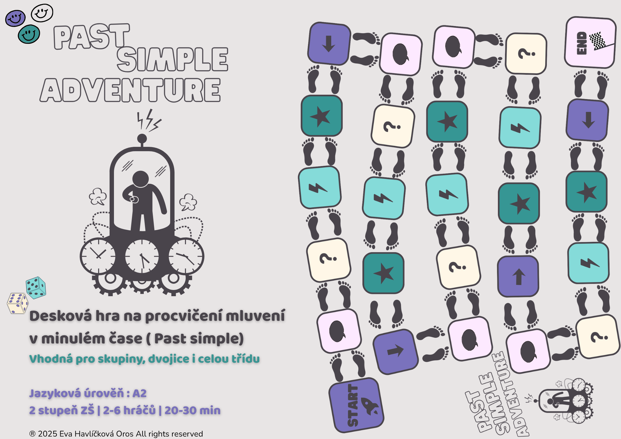 Zábavná desková hra pro procvičení minulého času (Past Simple).