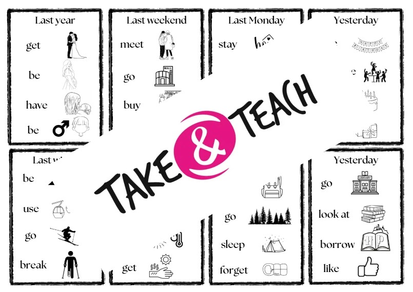 32 kartiček s mini příběhy pro použití v minulém čase prostém (past simple).