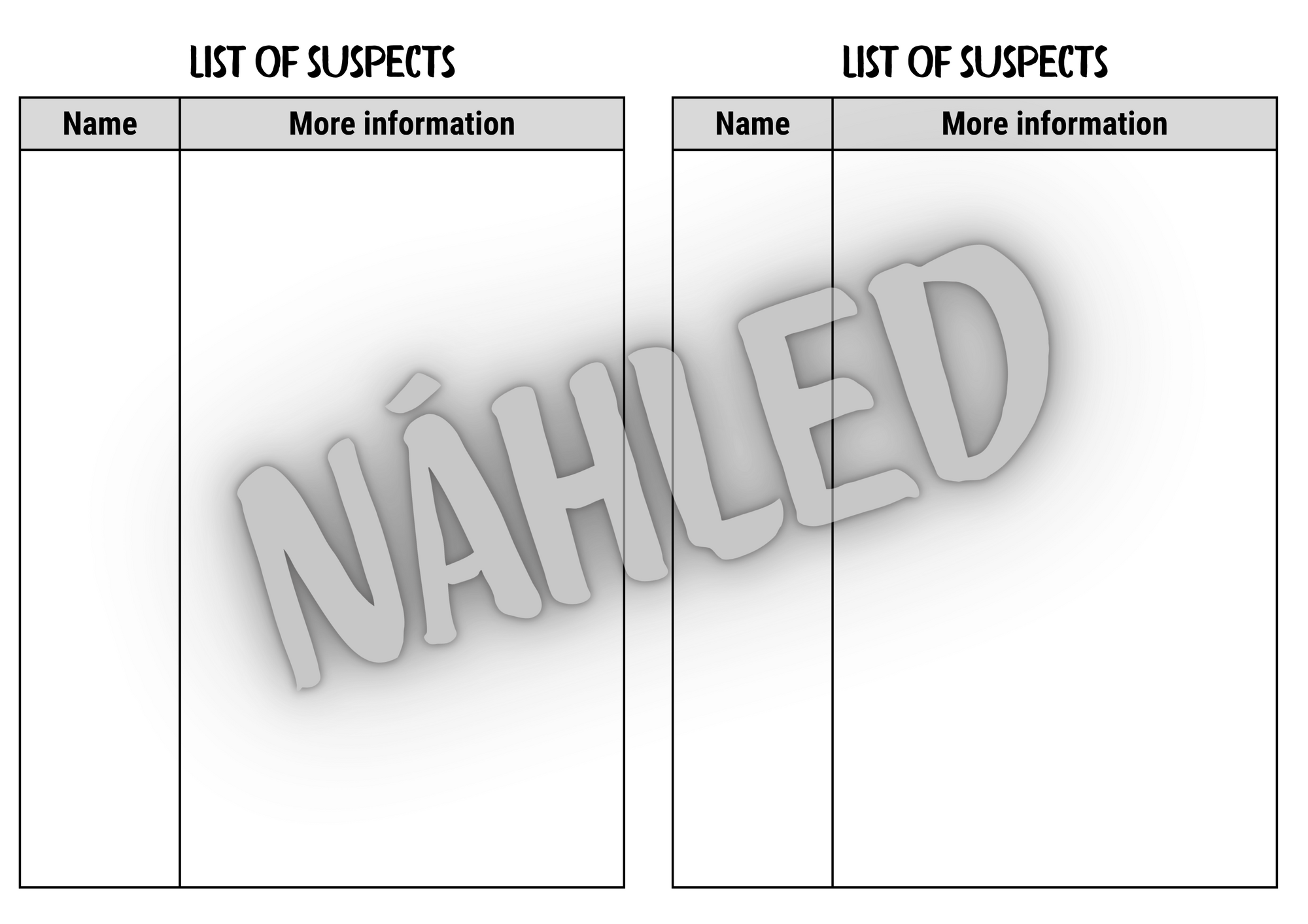 👉 list pro zapisování informací o podezřelých