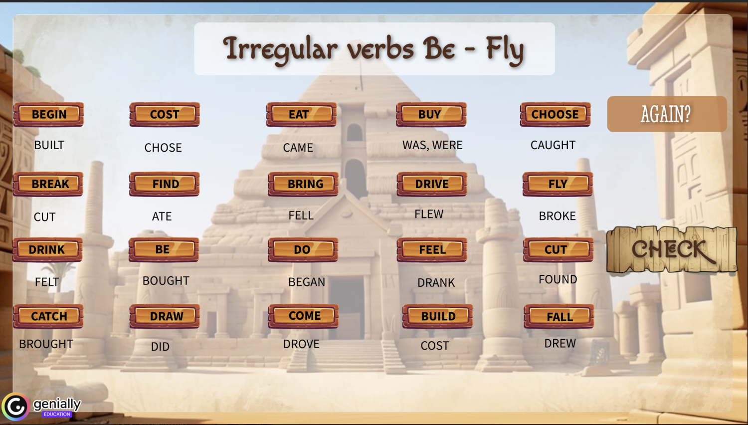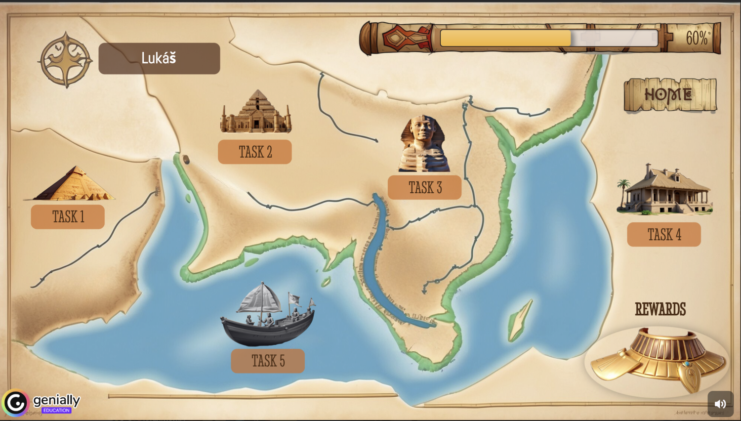 Rád bych vám představil tuto únikovou hru. Je zaměřena na pravidelná a nepravidelná slovesa v minulém čase prostém. Skládá se z 5 hlavních misí a tematicky je zasazena do Egypta. Úkolem hráče je získat postupně 5 částí vzácného faraónova klenotu tím, že splní jednotlivé mise.