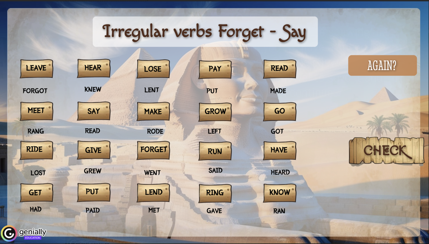 - Nepravidelná slovesa Forget - Say - 20 sloves, párování správných dvojic